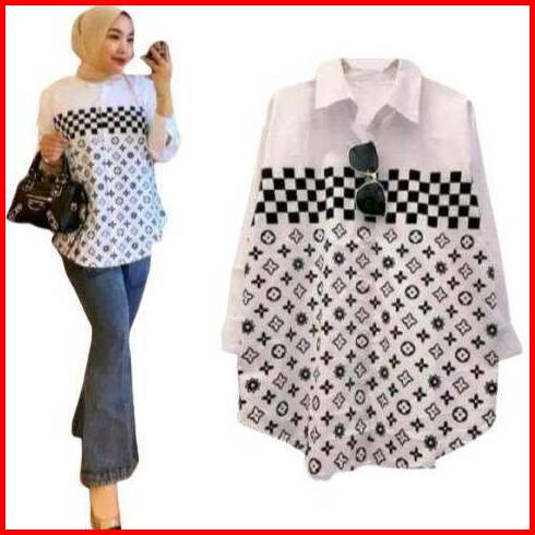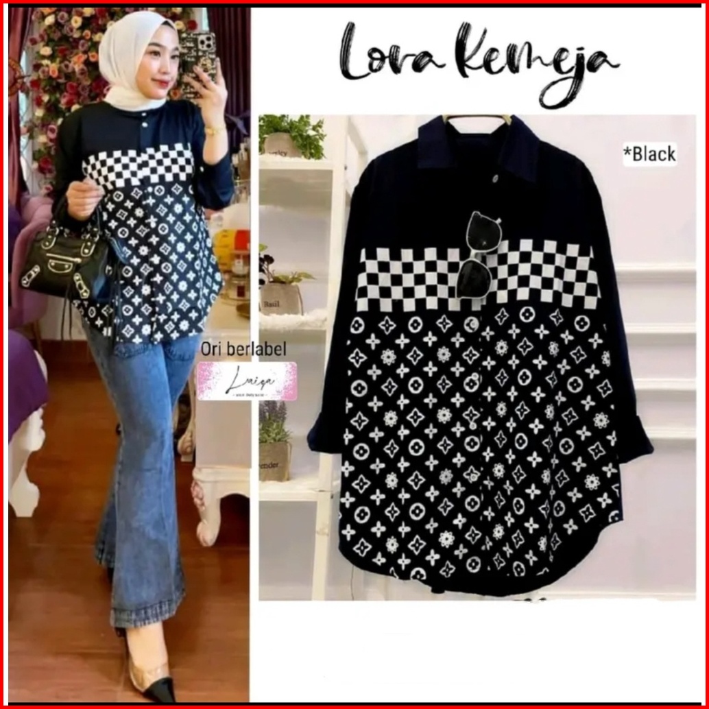 Kemeja Viral Wanita Crinkle Lora Wanita Casual Kekinian Terbaru Korean Style Premium Atasan Wanita Kemeja Motif Trendy V