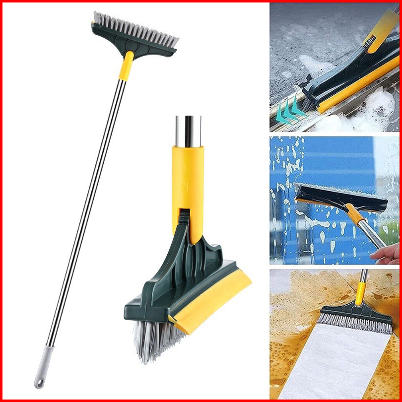 Bas Sikat Lantai Kamar Mandi 2 In 1 Sapu Pembersih Toilet Mutifungsi Gagang Panjang Stainless