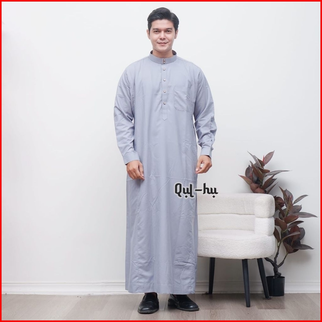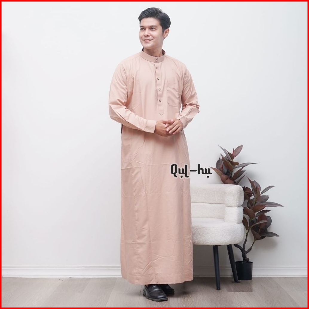 Jubah Gamis Pria Madinah Panjang Katun Airflow Lengan Manset Qulhu