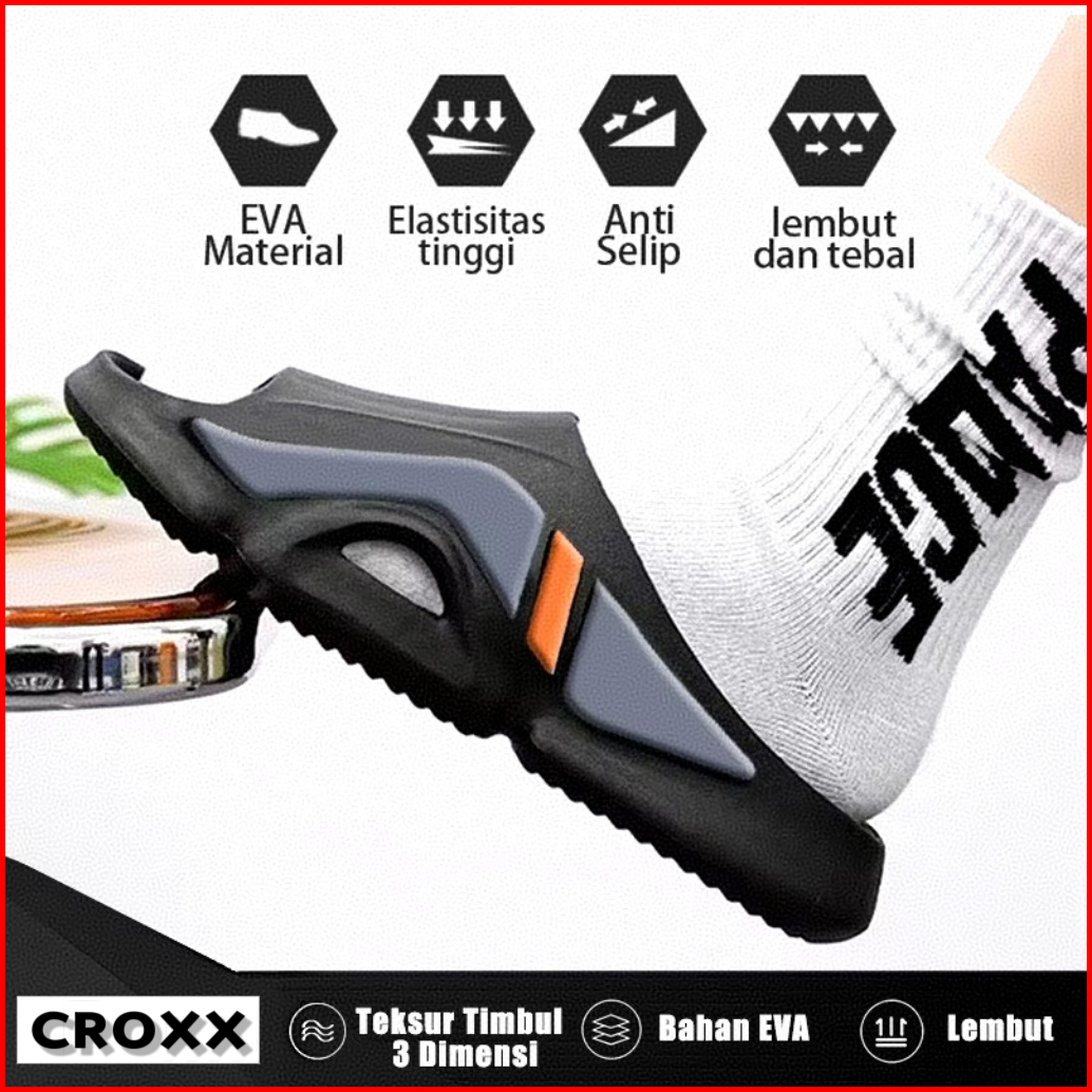 Croxx Sandal Slip On Pria 39-44 Eva Casual Selipar Sandal Slop Pria Kekinian Outdoor Olahraga Terbaru Sendal Karet Pria