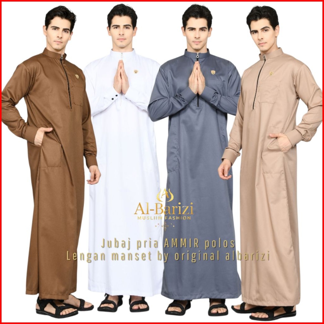 Jubah Gamis Pria Ammir Model Polos Tangan Manset Bahan Katun Toyyobo Premium