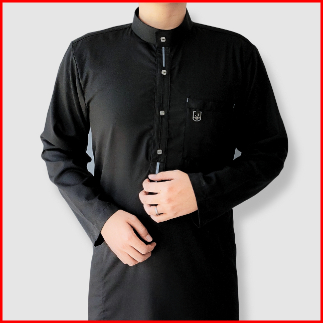 Jubah Pria Dewasa Lengan Panjang Gamis Putih - Hitam Aksen Minimalist Toyobo M-l-xl