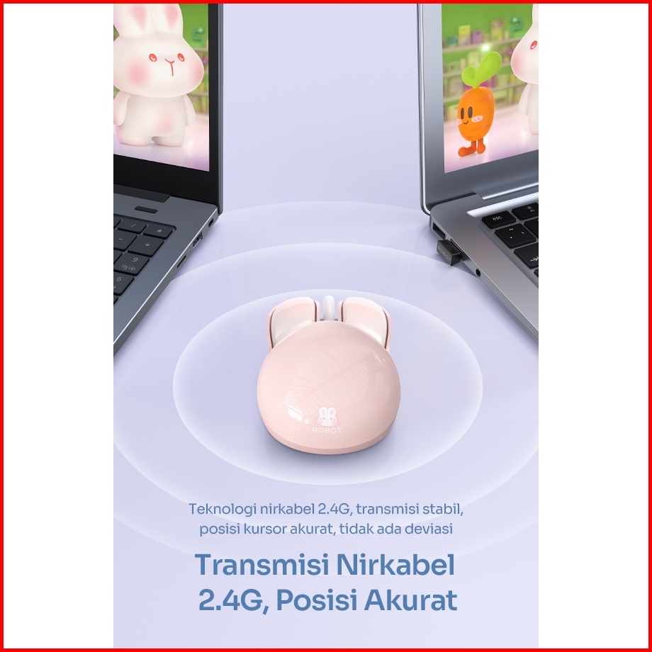 Robot M380 Mouse Wireless Silent Key 1200 Dpi Rabbit Design