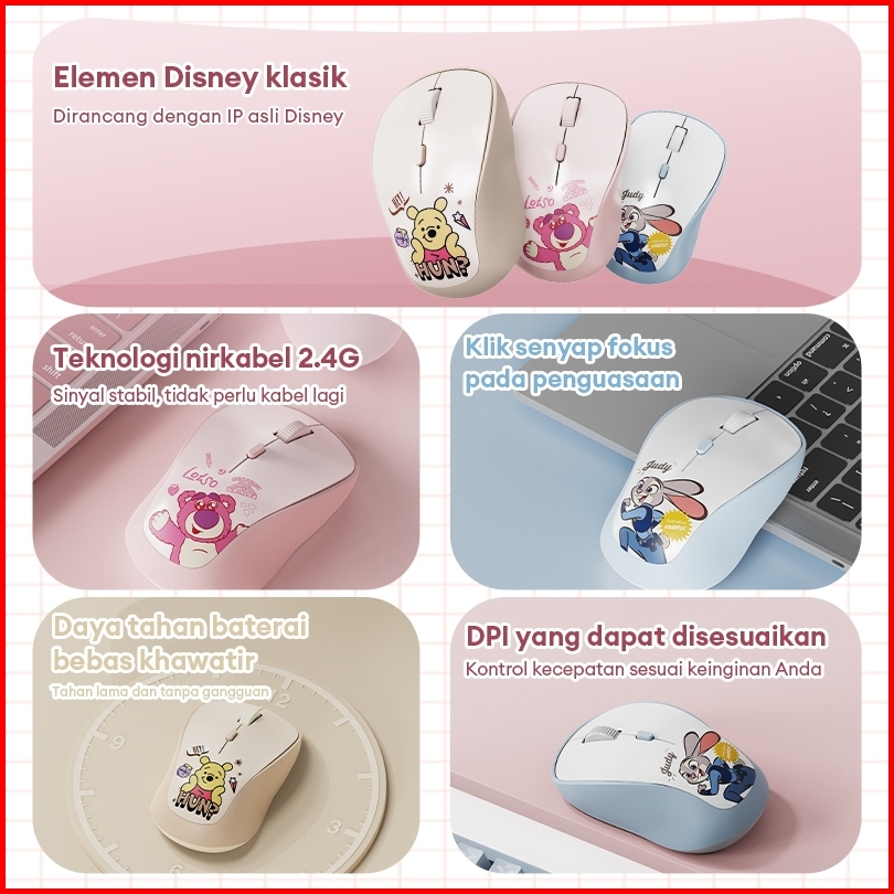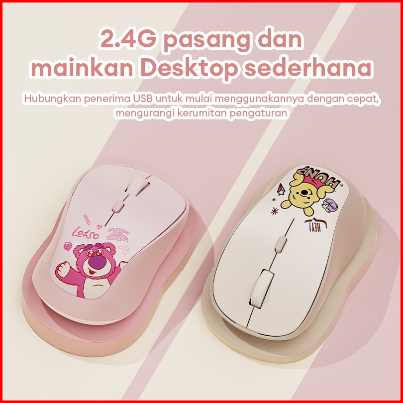 Disney Qs-ms07 2.4g Mouse Wireless Nirkabel Silent Mouse Bluetooth Portable 3-speed Dpi Switch Large Battery Life Stable