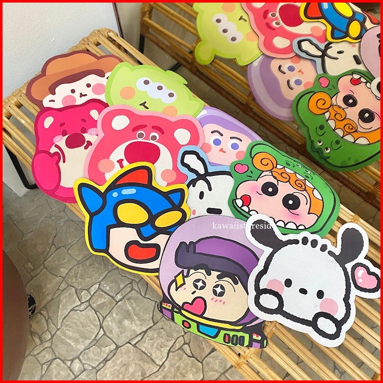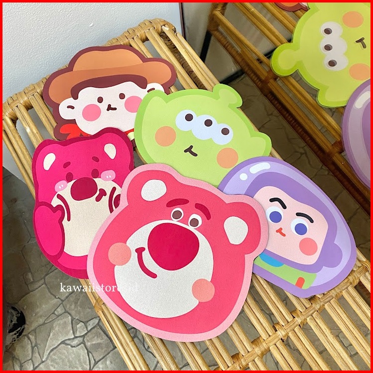 Mouse Pad Sanrio Tatakan Bulat Komputer Laptop Bahan Rubber Lucu Unik Karakter Kartun Lotso Woody Alien Buzz Hello Kitty