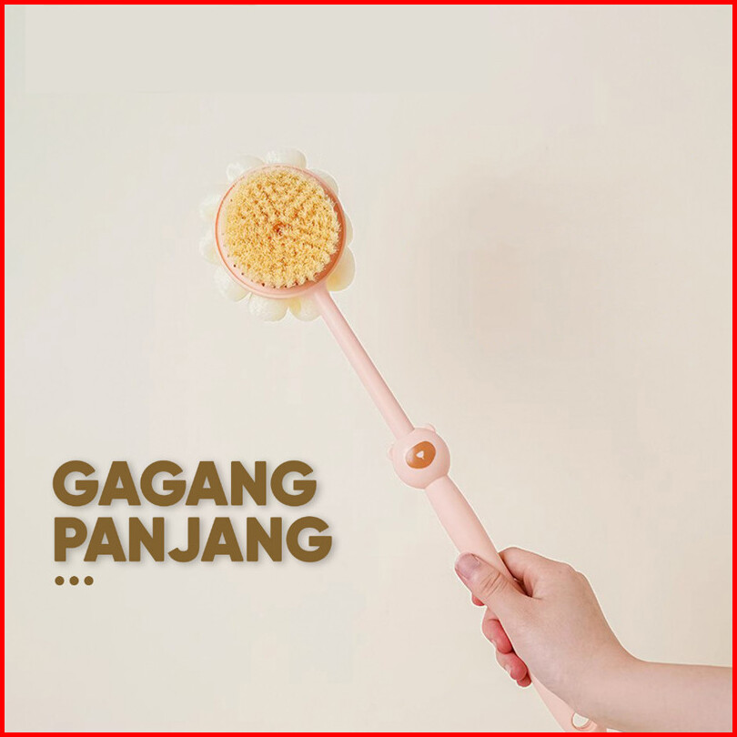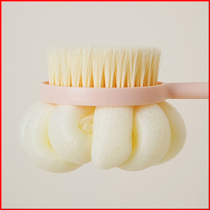 Sikat Punggung Badan Dan Sponge Puff Loofah 2in1 Alat Bantu Gosok Punggung Badan 2 Sisi Sikat Punggung Serbaguna Bath Br