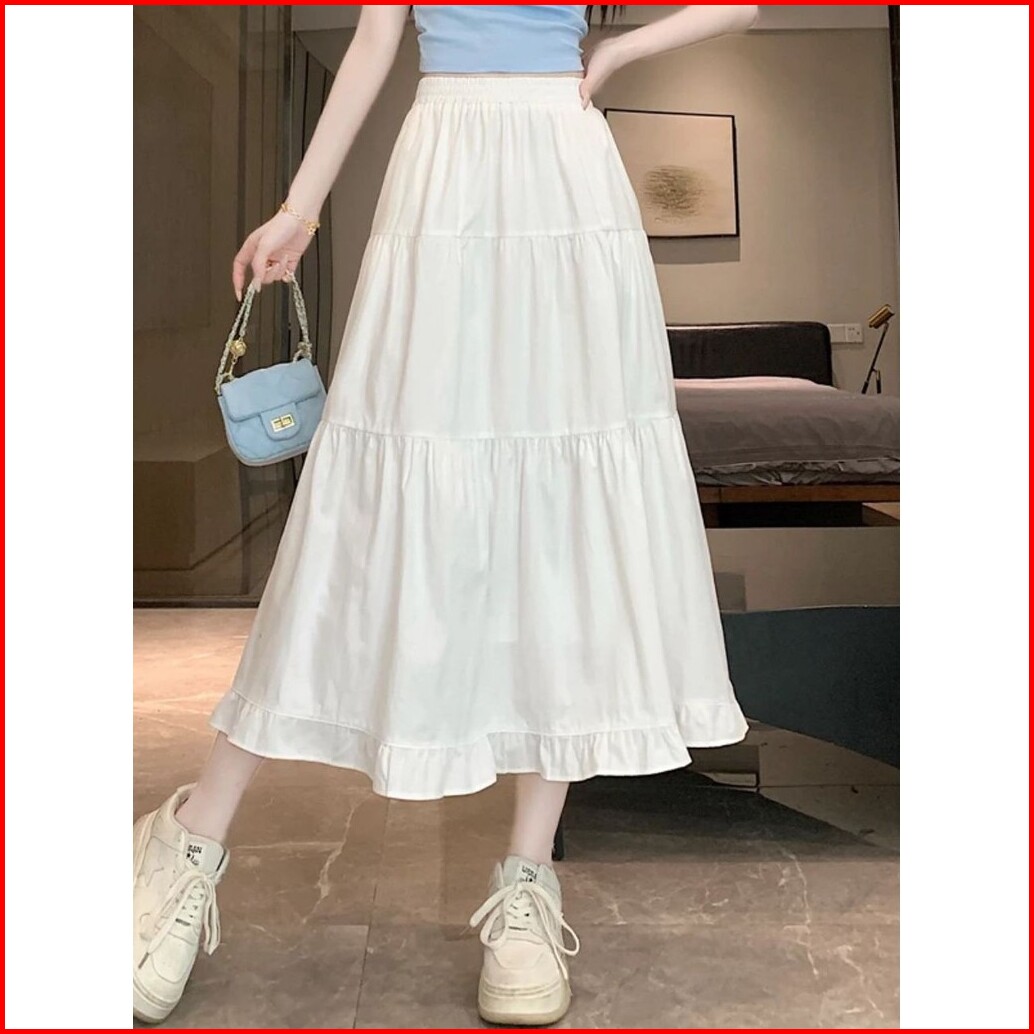 Rok Rufla Midi Skirt Ceruty Full Furing Jumbo Besar Panjang Premium