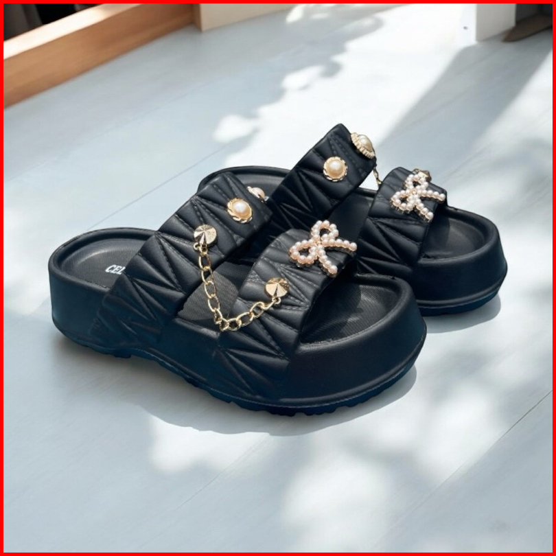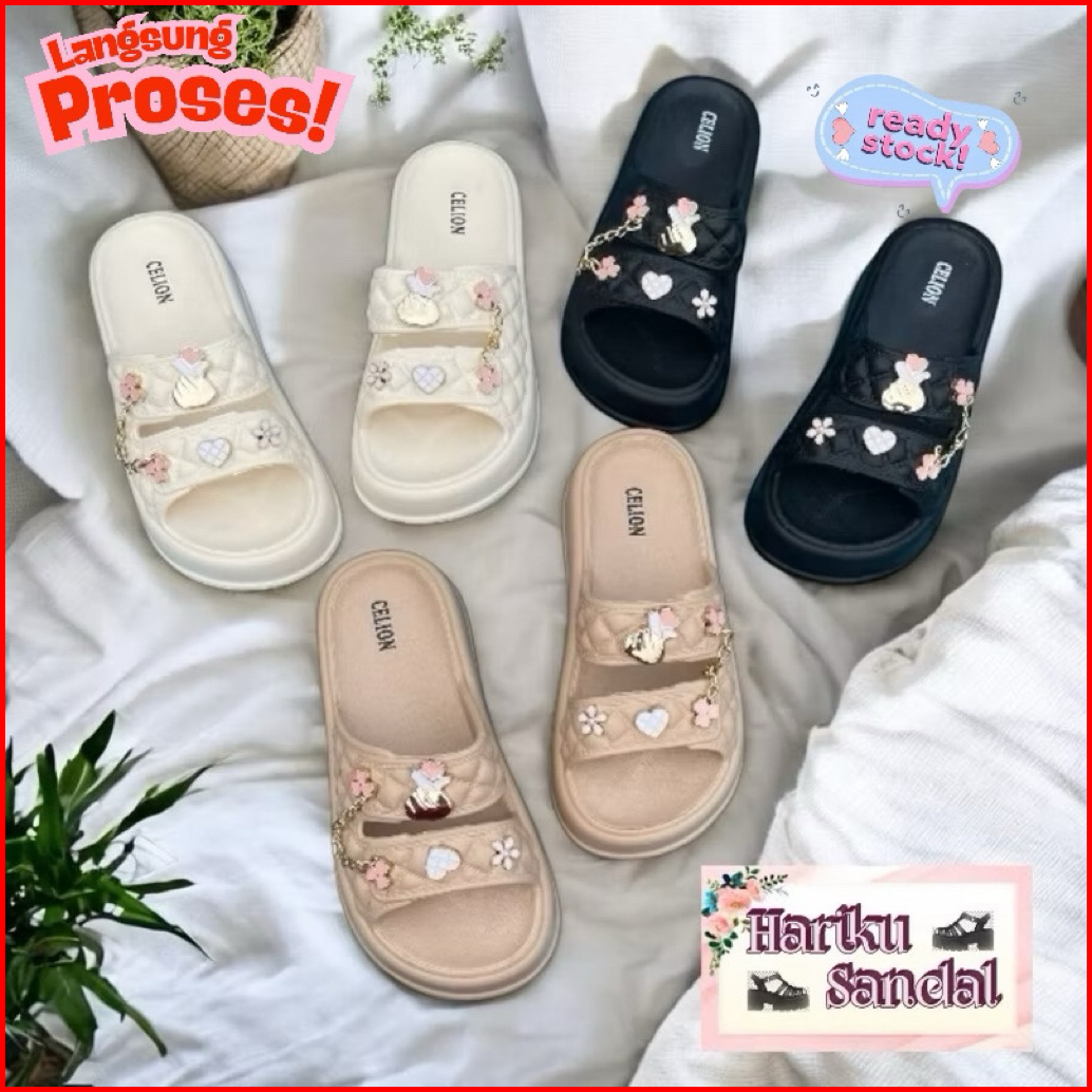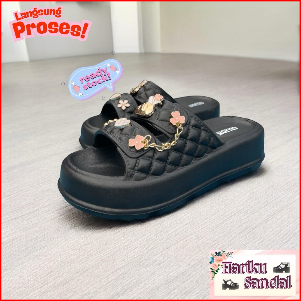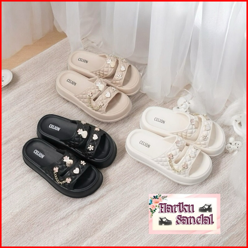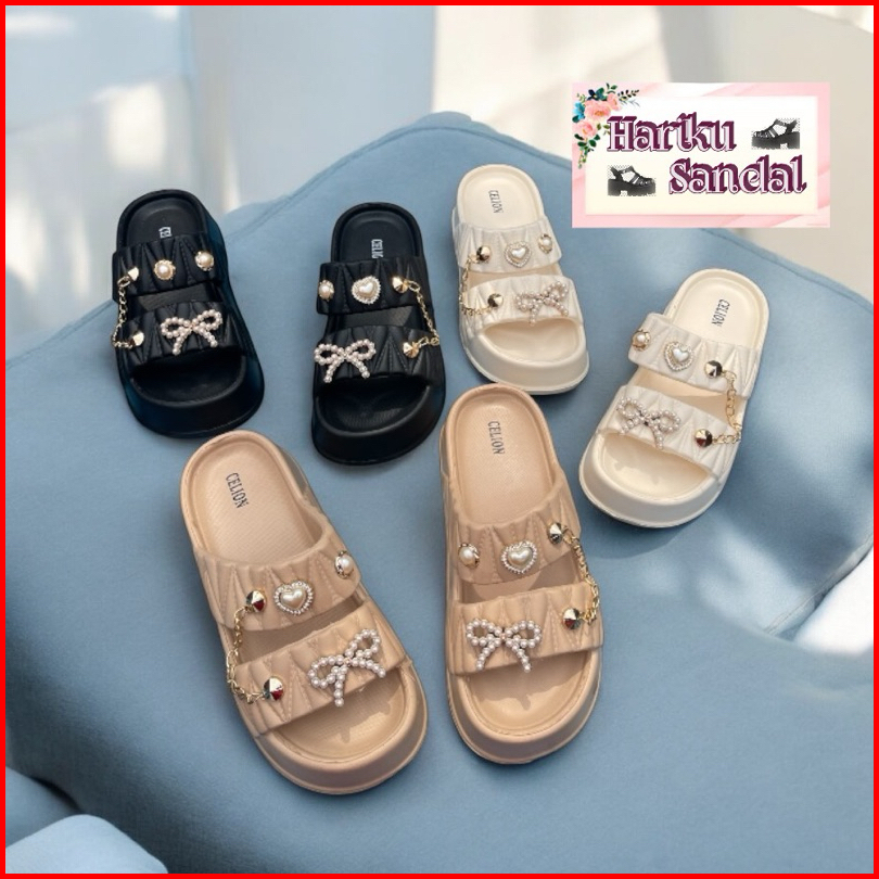 Sandal Fuji Wanita Ban 2 Pin Sarangheo Luvina Kiyowo 1101-4 Eva