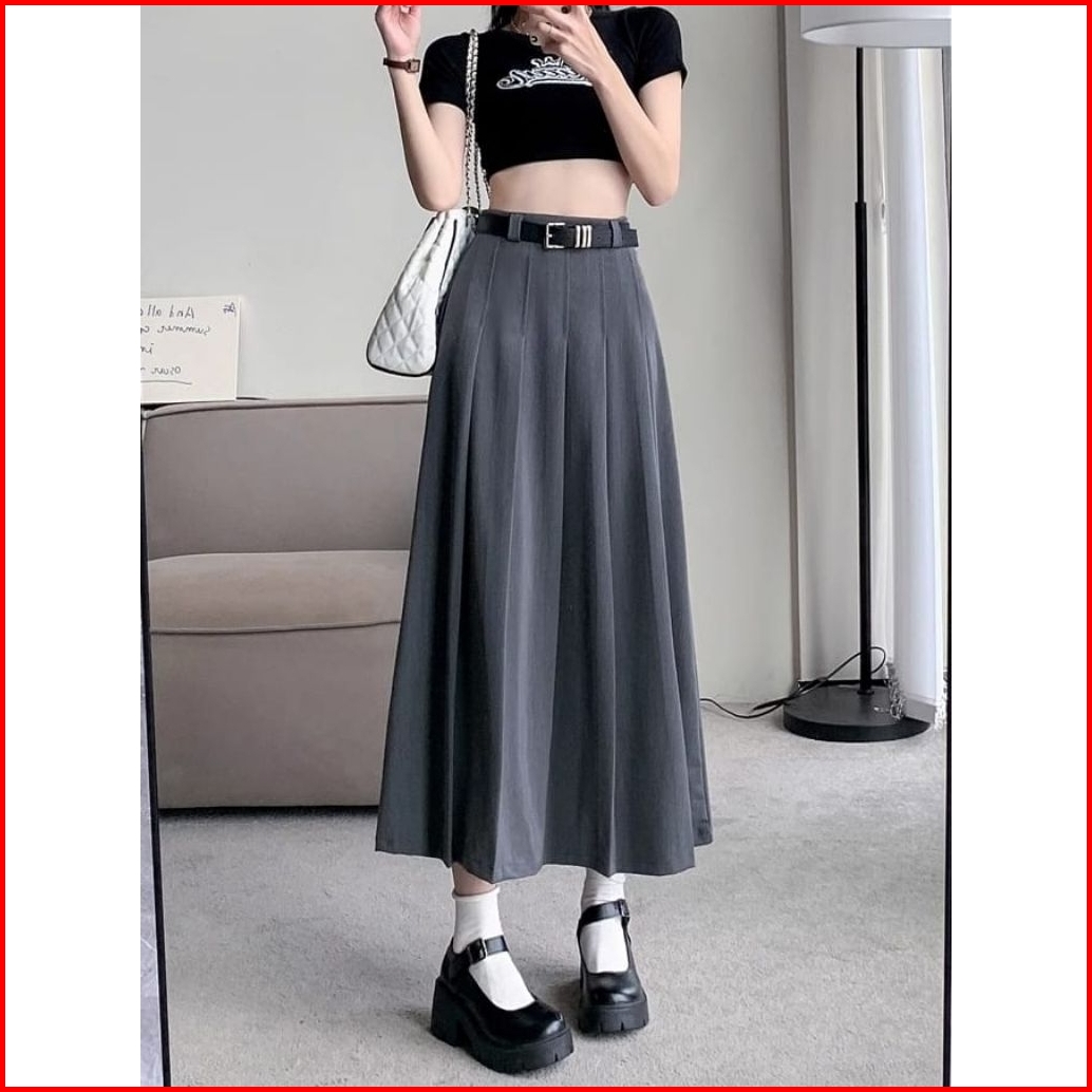 Burgundy Edition Rok Wanita Midi Korean Style - Joy Skirt Flare Terbaru - Rok Wanita Premium