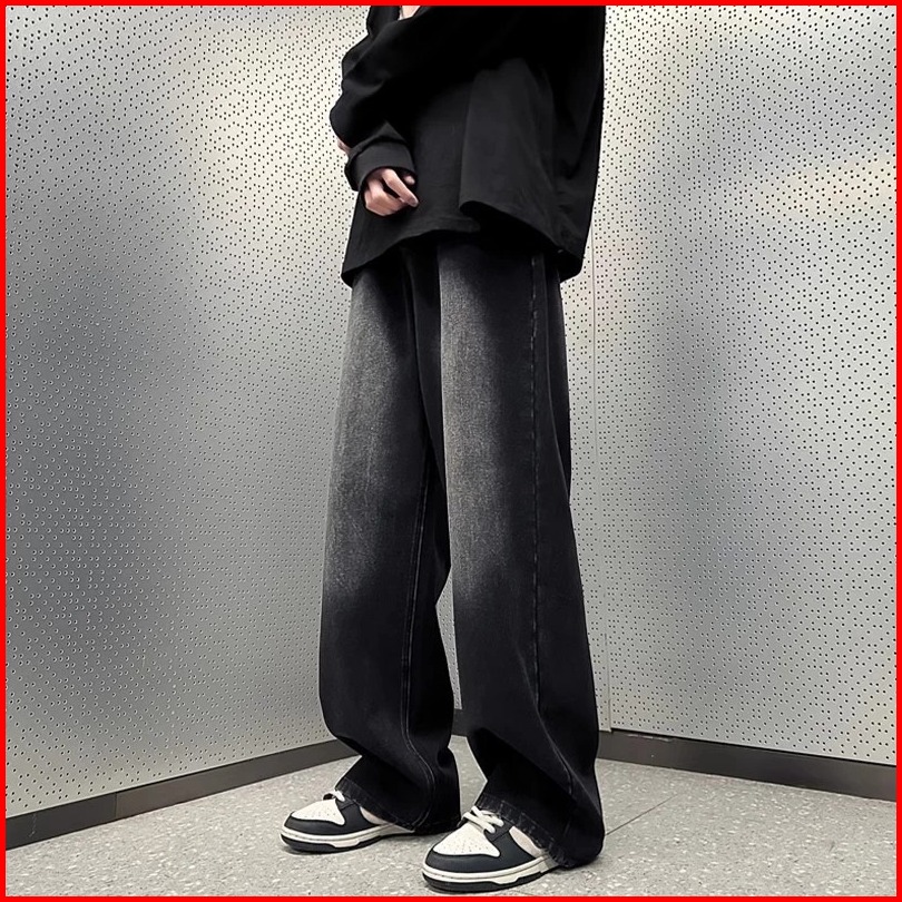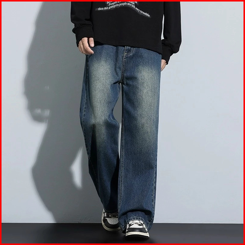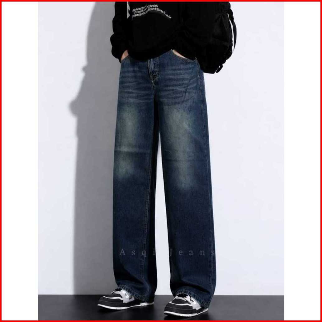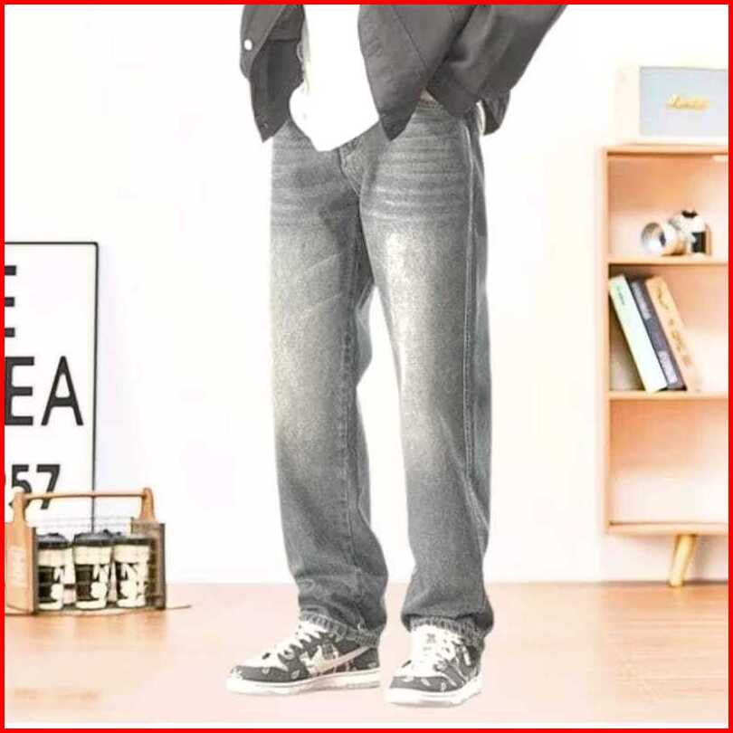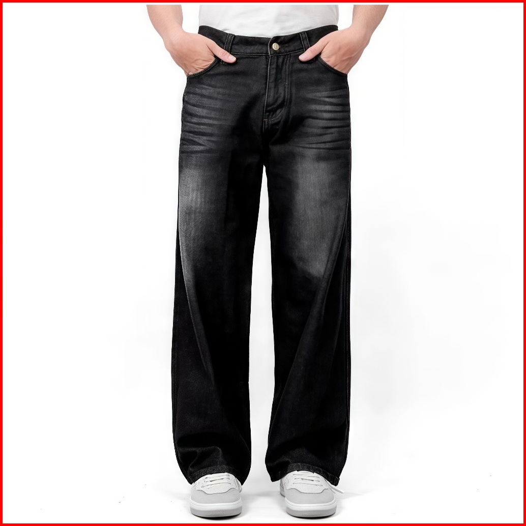Celana Jeans Spray Wide Leg Wisker Gombrong - Celana Panjang Jeans Washed Loose Fit Pria