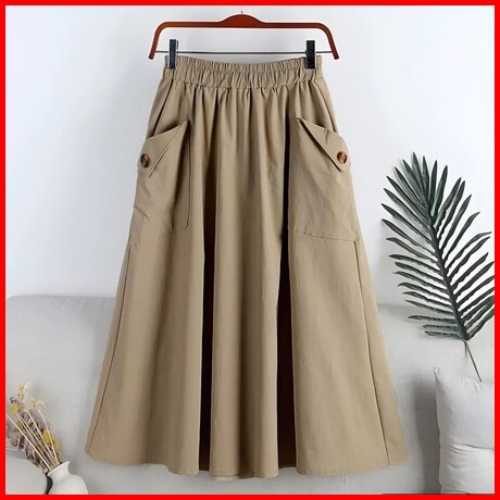 Rok Cargo Twill Wanita Standar Katun Karet Panjang Milo - Sage Maxi Shai Skrit