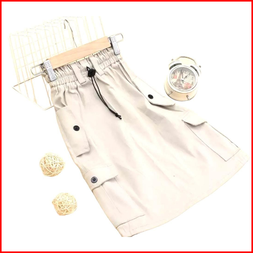 Rok Panjang Cargo Anak Perempuan Bahan Chinos Stretch 1-12 Tahun