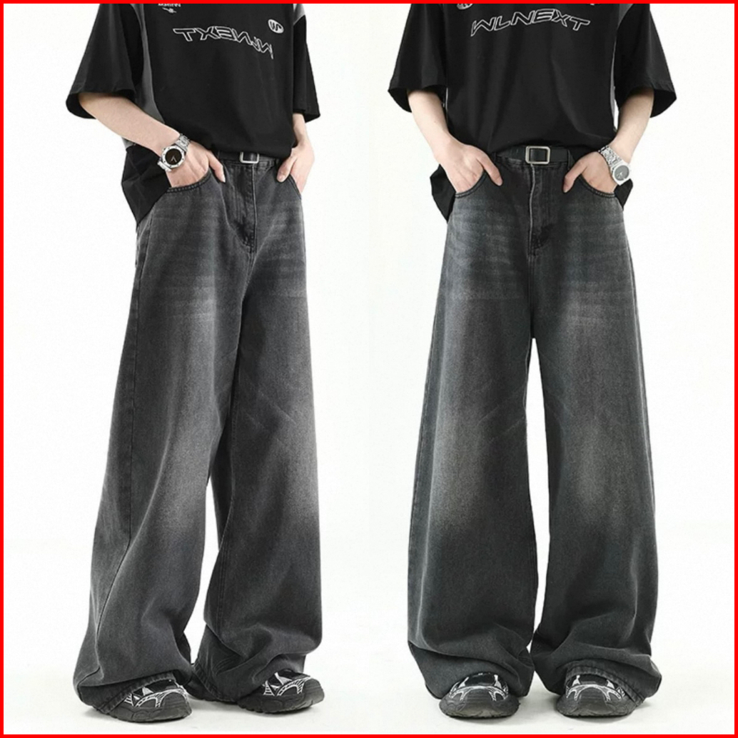 Celana Jeans Pria Hitam Longgar Oversize Baggy Straight Premium Casual Nyaman Celana Panjang Pria Jumbo Loose Fit