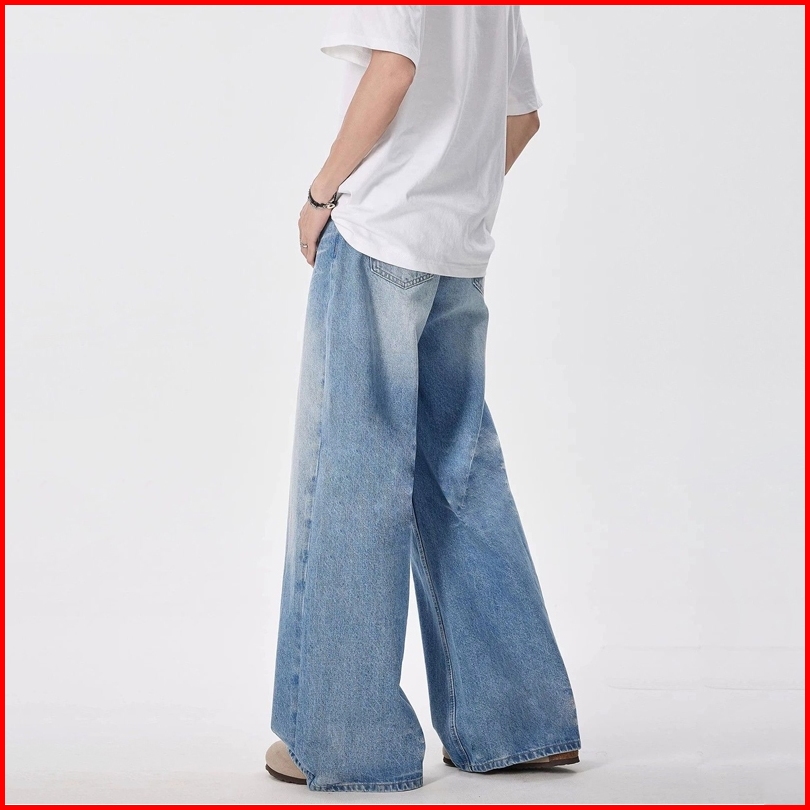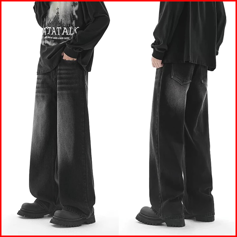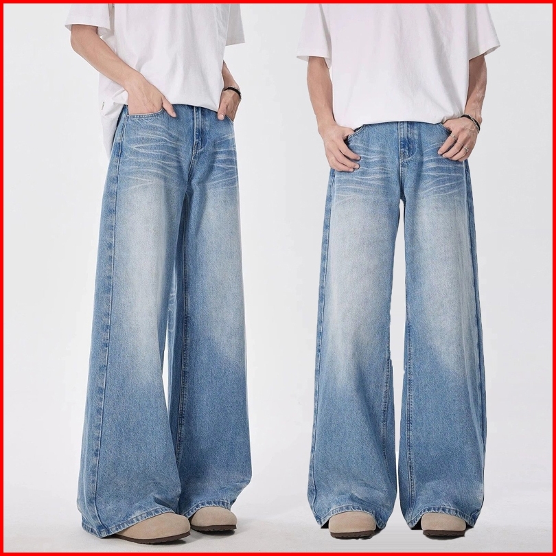 Celana Jeans Pria Panjang Biru Dewasa Kulot Denim Jumbo Korean Style Laki Laki Baggy Pants Straight Fashion Cowok