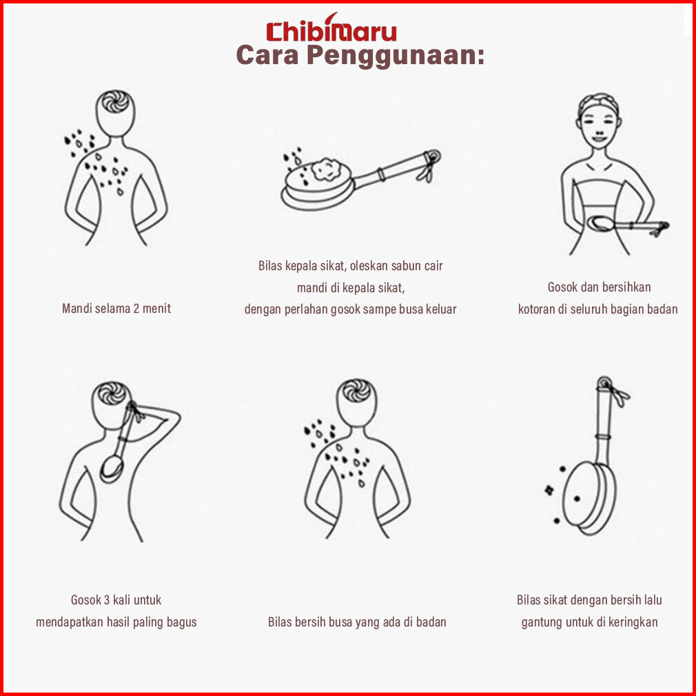 Sikat Mandi Gosok Punggung Gagang Panjang Halus Anti Daki Korea Bath Brush