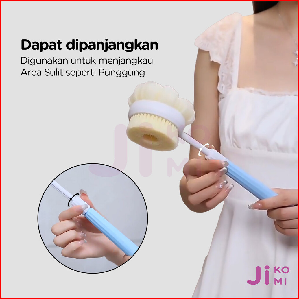 Sikat Gosok Punggung Tarik 2 In 1 Gagang Panjang Shower Puff Mandi Eksfoliasi Sponge Lembut - Ji