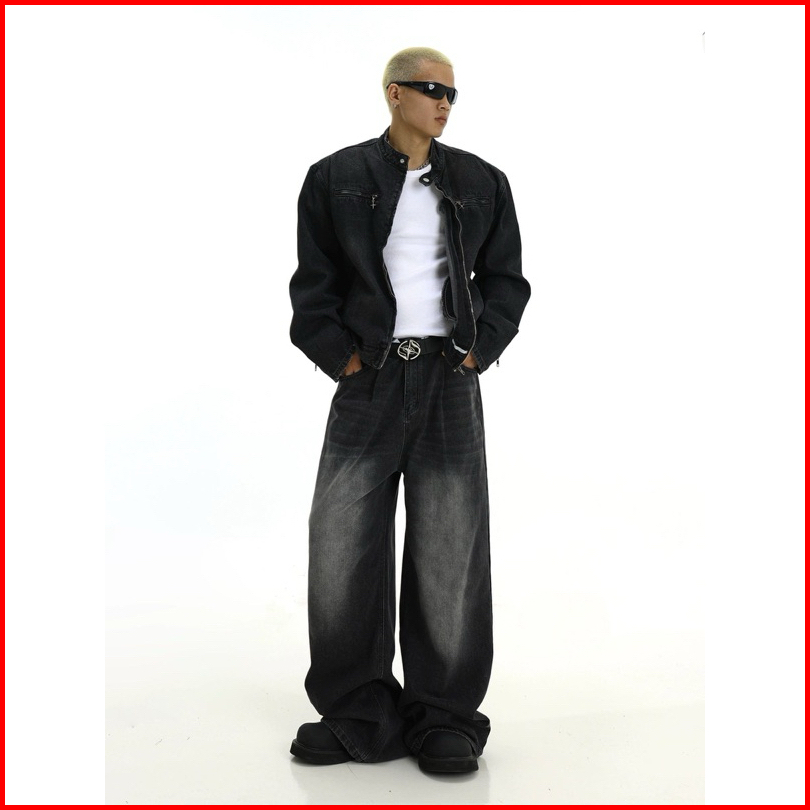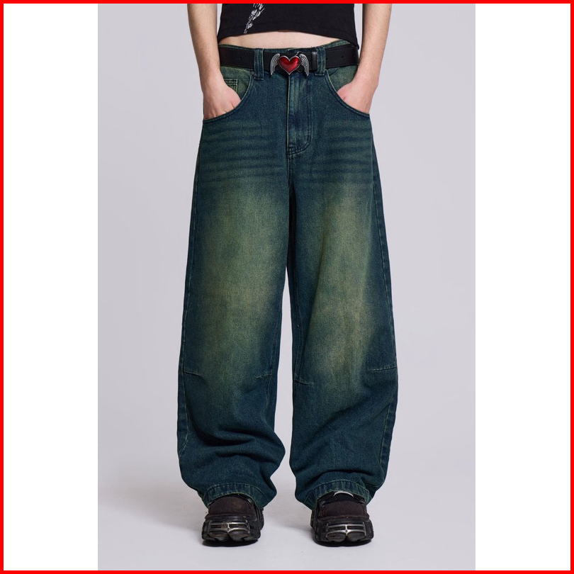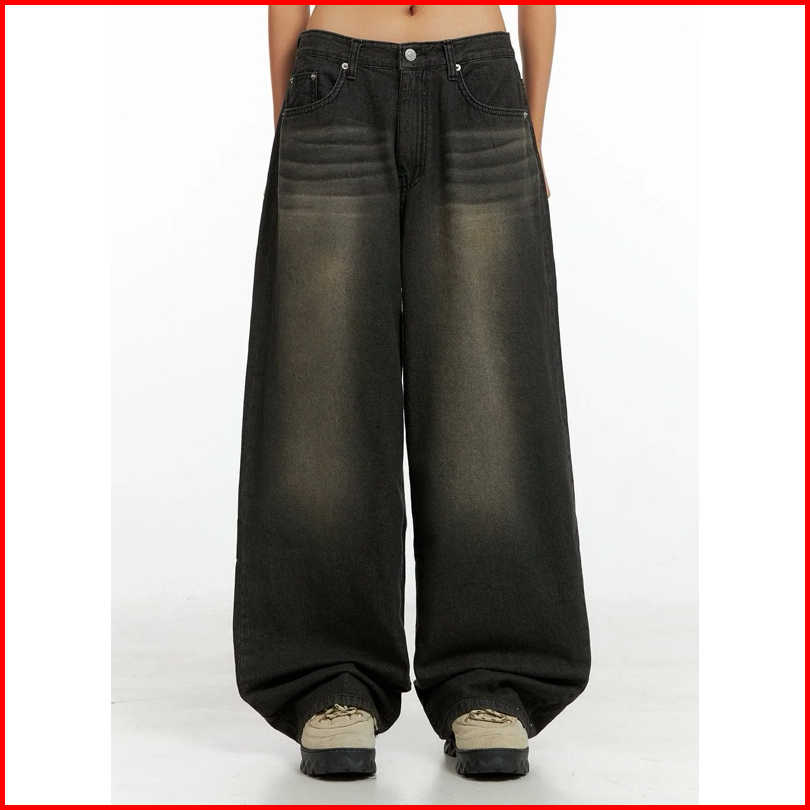 Celana Jeans Gombrong Skena Wide Legs Loose Fit Bahan Denim Hitam Whisker Celana Gombrang Baggy