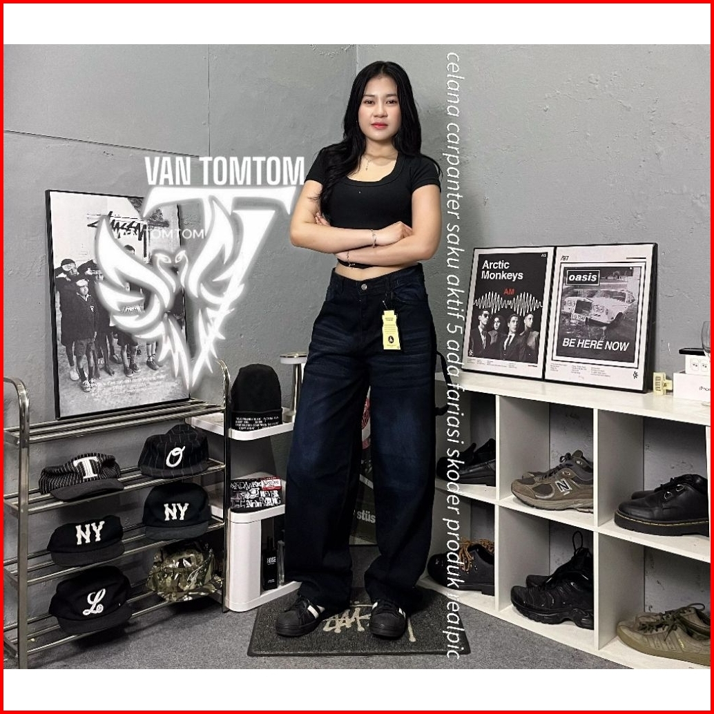 Celana Carpenter Jeans Whisker Gombrong Baggy Streetwear