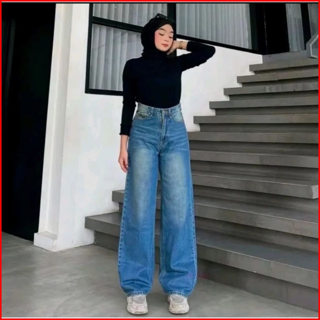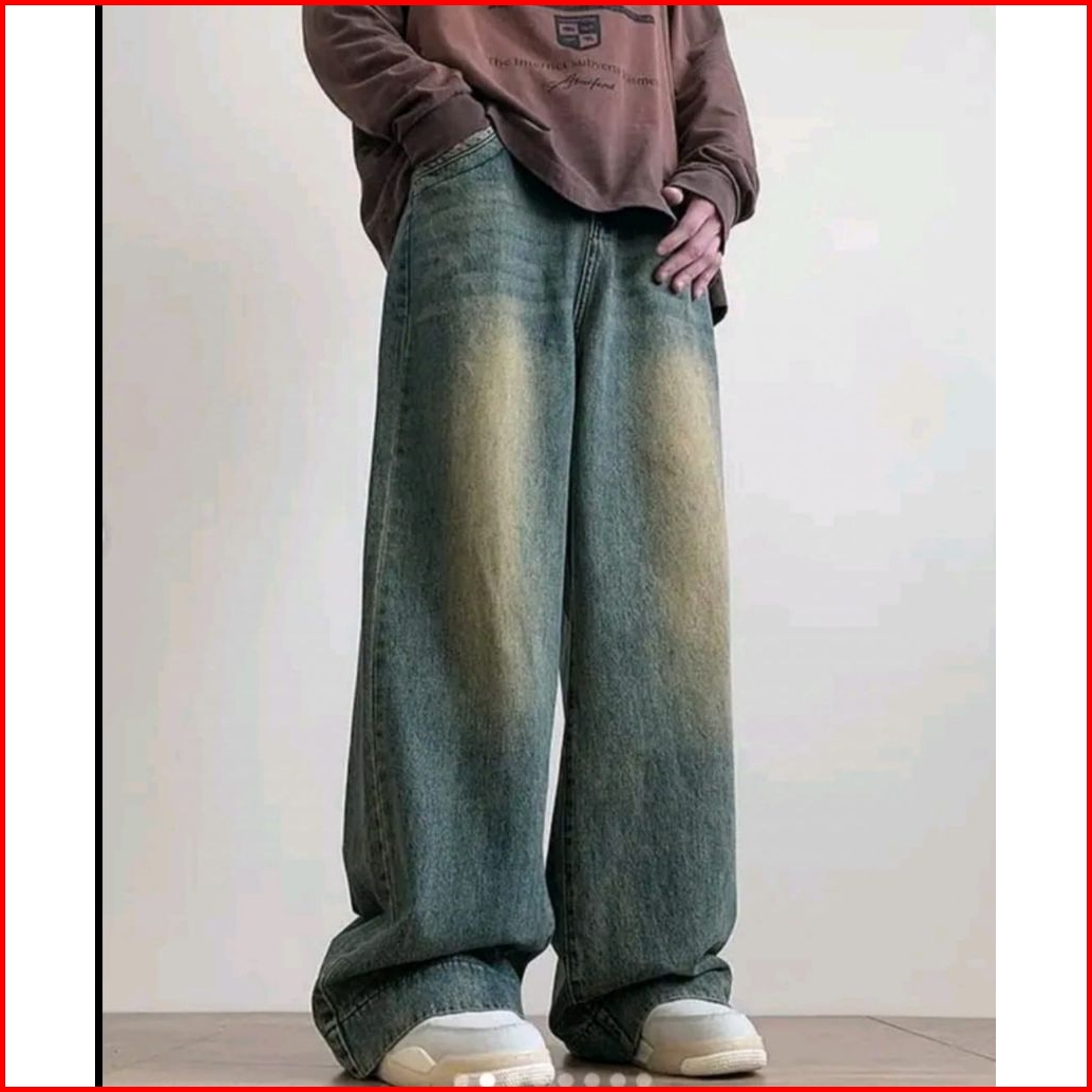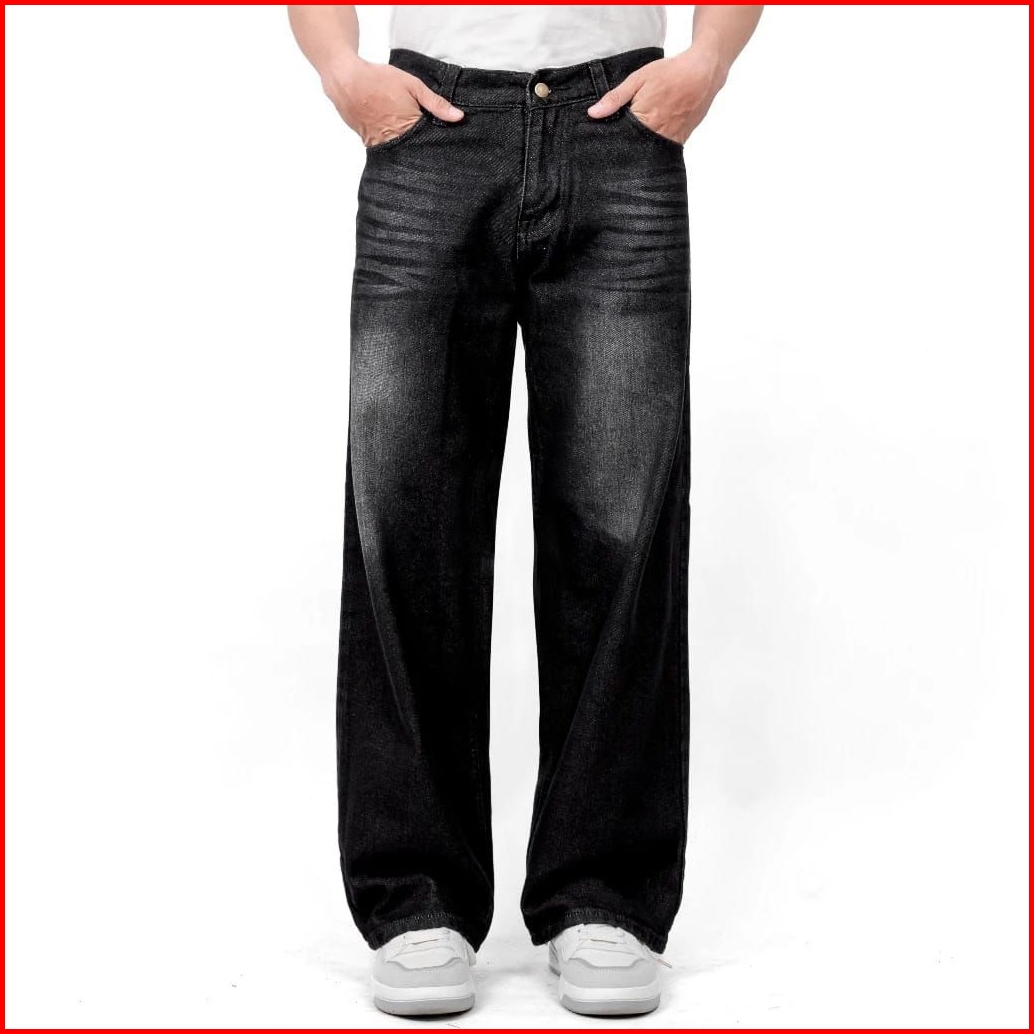Celana Jeans Wide Leg Wisker Lebar Gombrong Skena Hitam Dop Pria Loose Fitt Jumbo Big Denim Celana Jeans Highwaist Overs