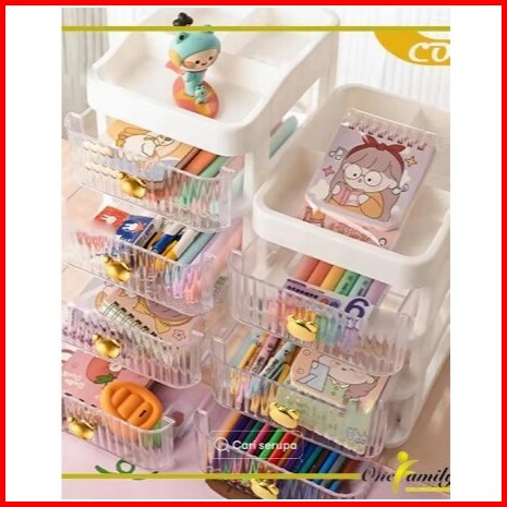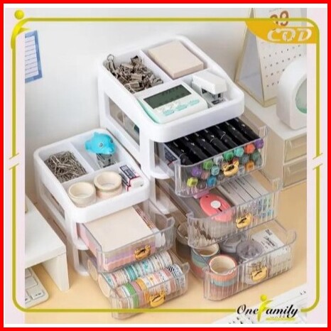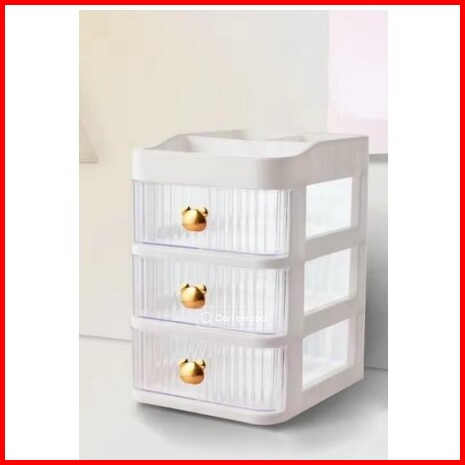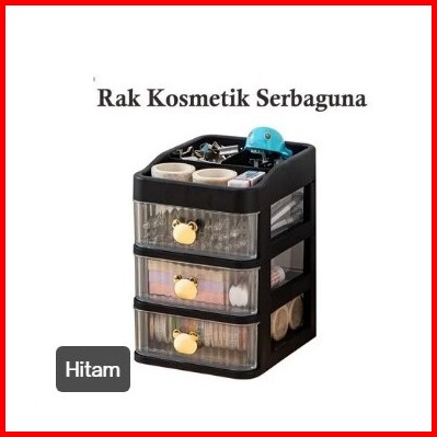 Rak Meja Serbaguna Laci Susun 3 Tingkat Gambar Kepala Beruang Wadah Penyimpanan Barang Make Up Rak Kosmetik Tempat Karet
