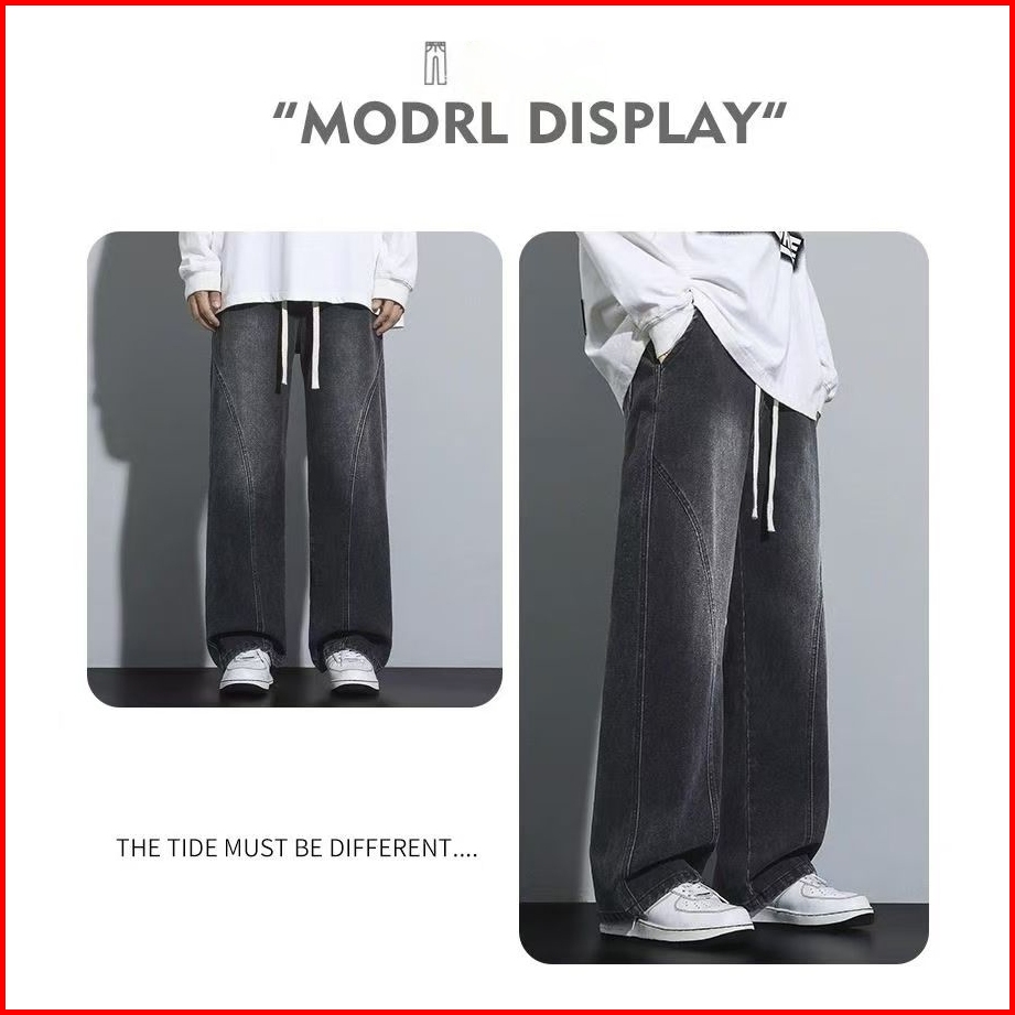 Keyboy Celana Jeans Pria Panjang Baggy Pants Celana Denim Dewasa Cowok Oversize Hitam Abu S-5xl Korean Style