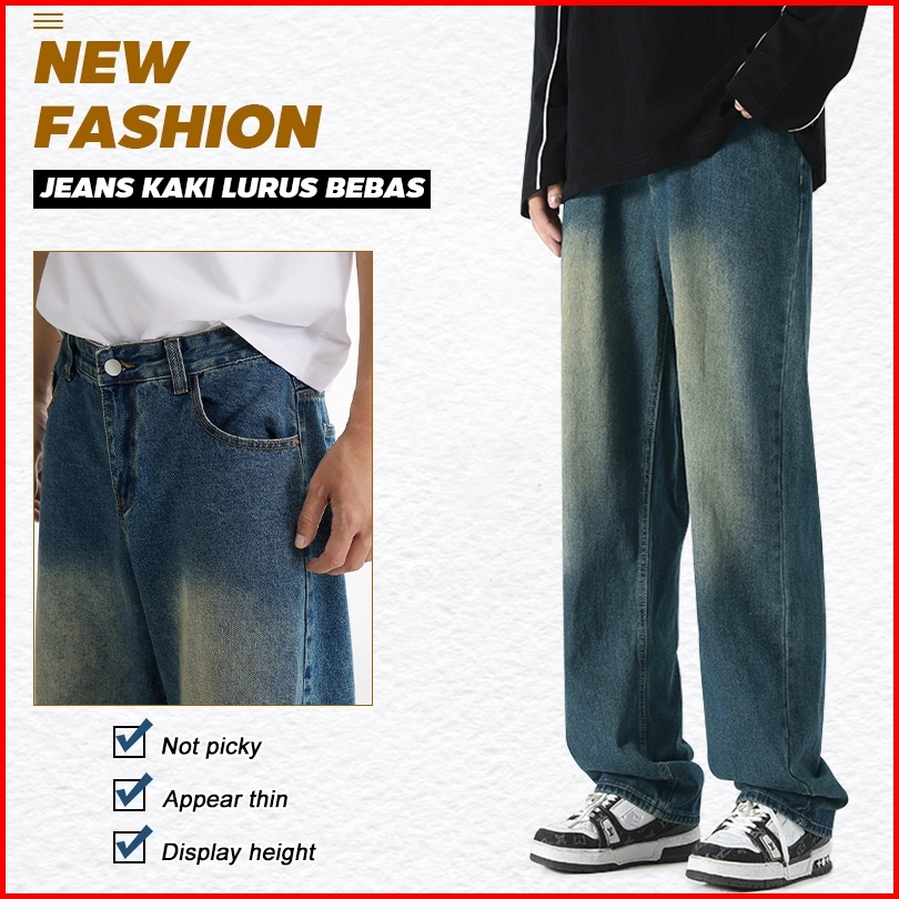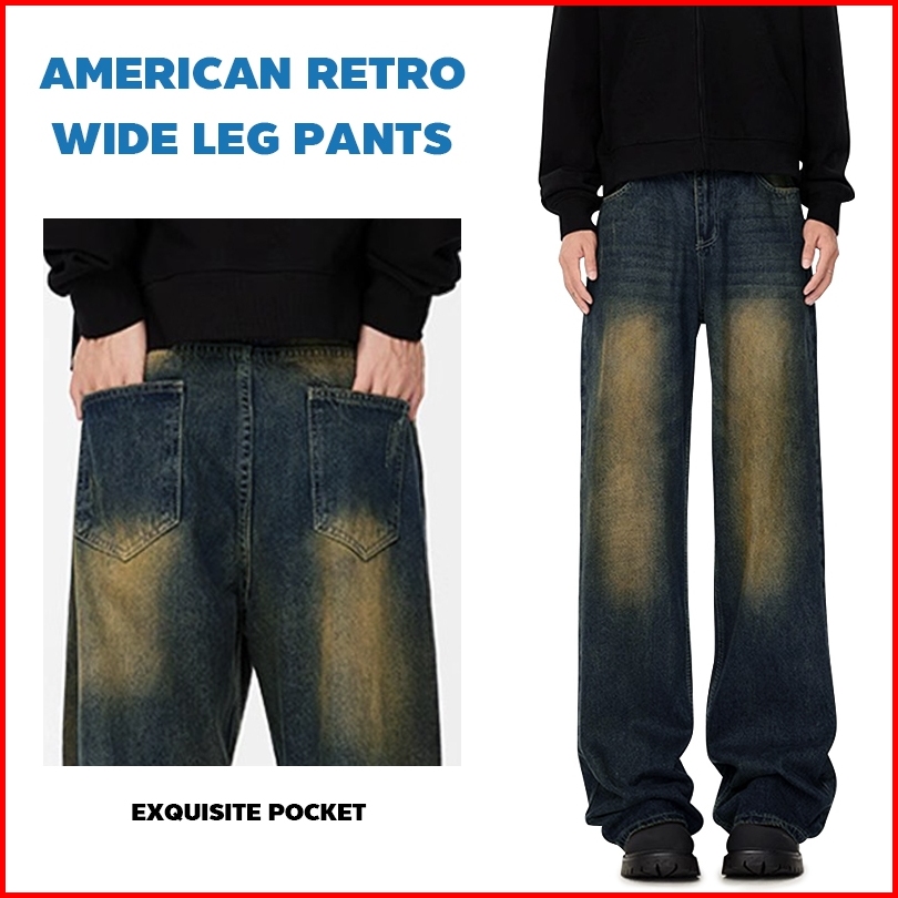 Celana Jeans Pria Oversize Baggy Loose Jeans American Retro Porkel