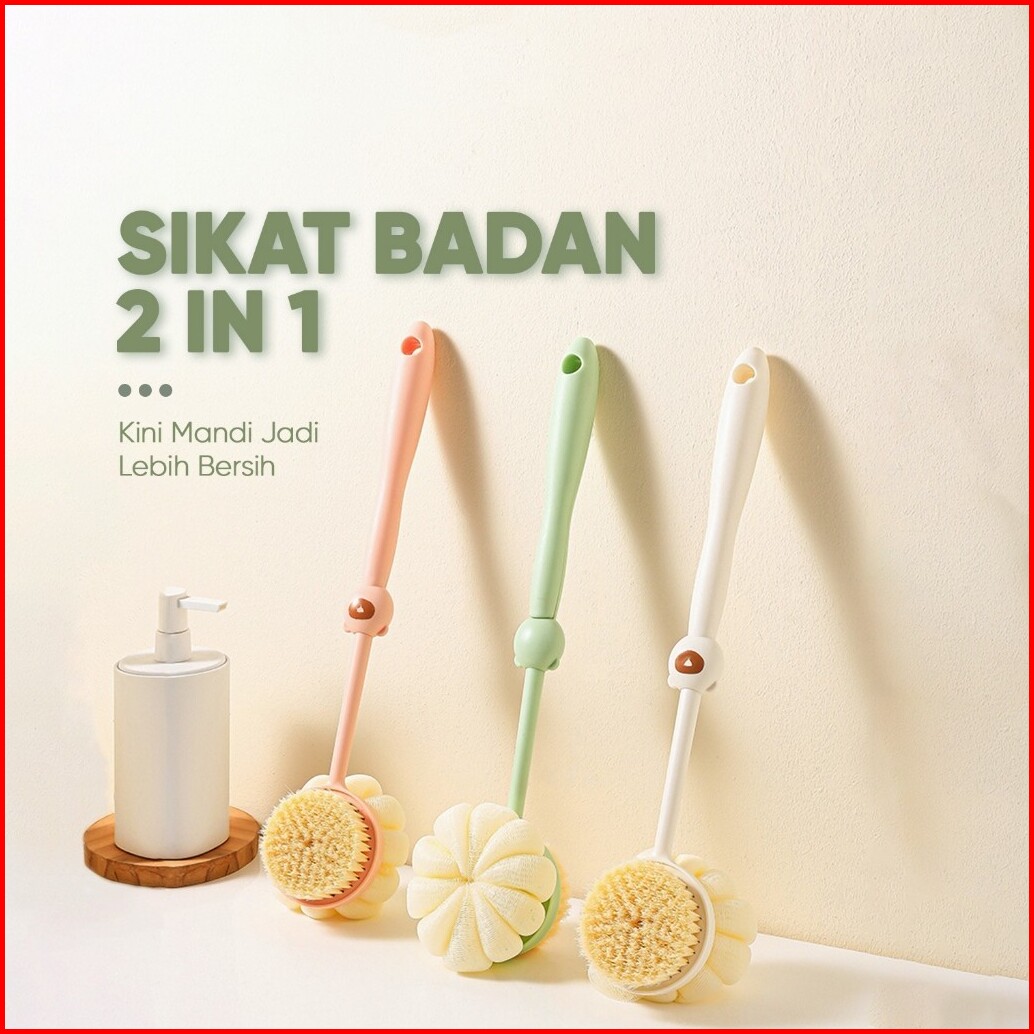 Serbagrosirmurah Shower Puff 2 In 1 Sikat Mandi Bulu Spons Halus Lembut Gagang Panjang