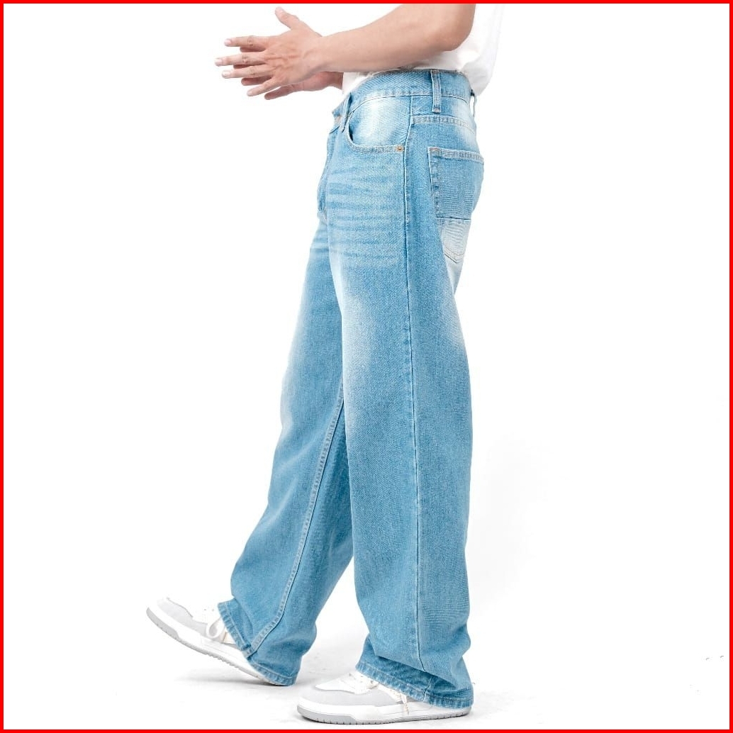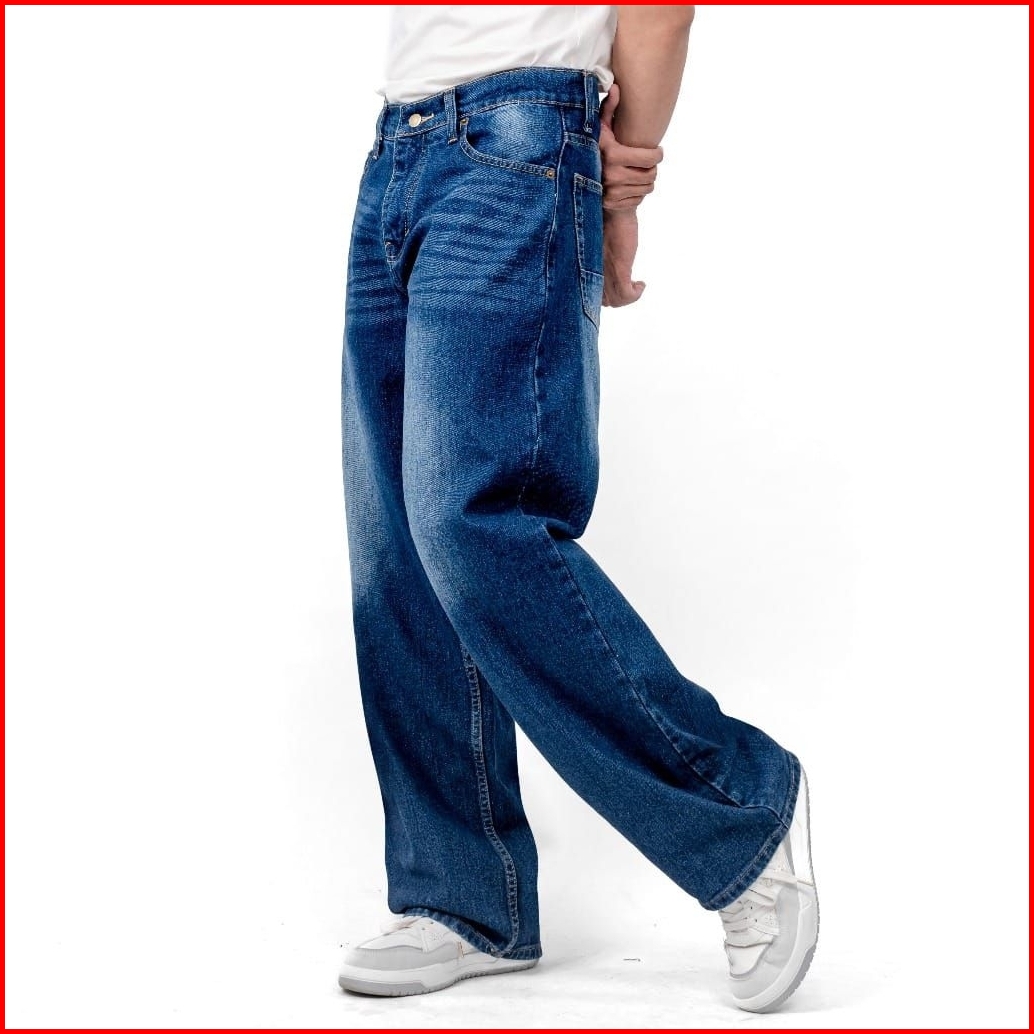 Celana Baggy Jeans Panjang Pria Koreanstyle Gombrong Whisker Kekinian