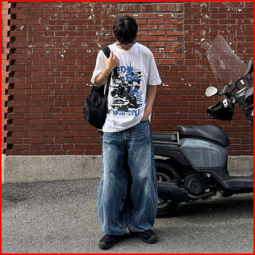 Celana Jeans Wide Leg Wisker Lebar Gombrong Skena Black Wisker Pria Loose Fit Jumbo Big Keren Bahan Denim Celana Jeans P