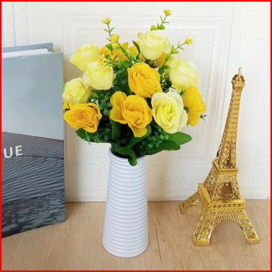 Satu Set Bunga Mawar Artificial Vas Ulir Panjang