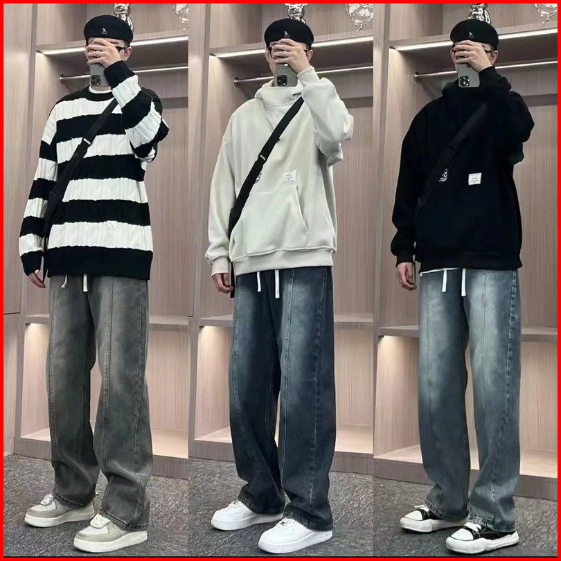 Celana Jeans Pria Baggy Pants Straight Panjang Cowok Casual Celana Denim Dewasa Laki Laki Loose Fit Celana Kulot Pria Ko