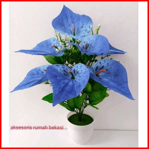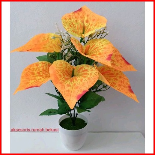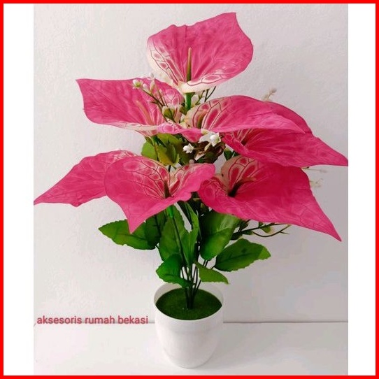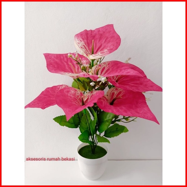 Bunga Aron Panda Artificial Dekorasi 7 Kuntum Dengan Pot Lumut Melamin