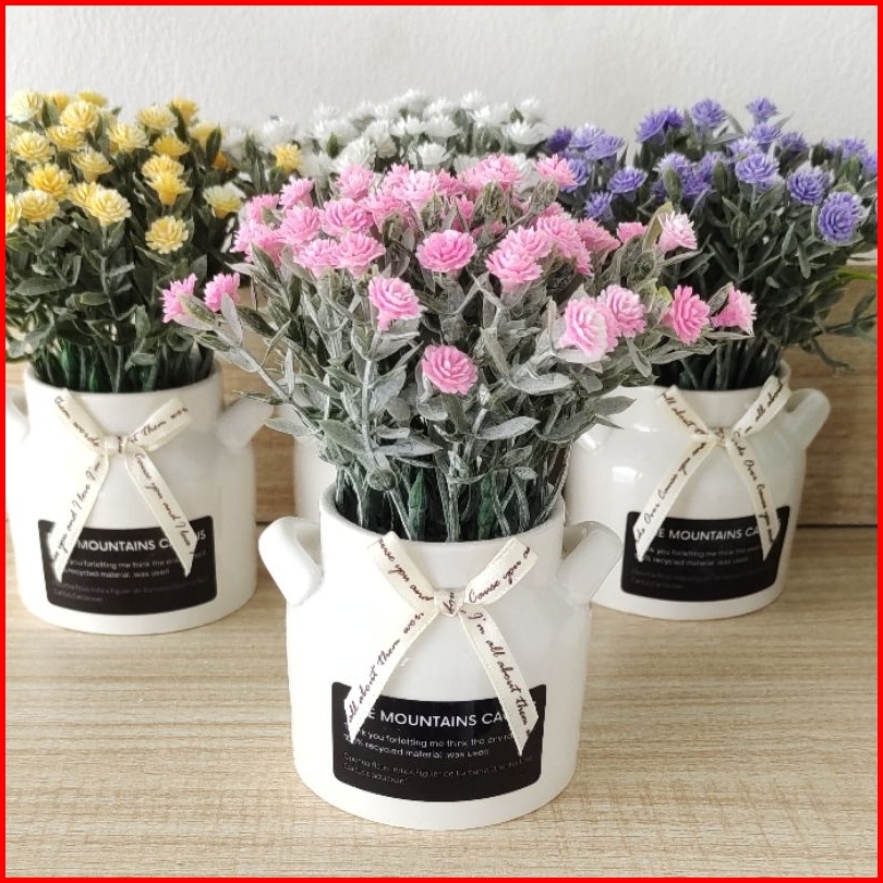Bunga Plastik Tanaman Artificial Flower Gypsophila Vas Keramik Bunga Palsu Hias