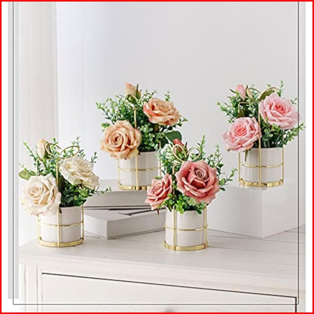 Rumah Cantik Decorset Bunga Buatan Nordik Vas Keramik Mawar Pot Tanaman Buatan Dekorasi Rumah Pot Bunga Palsu