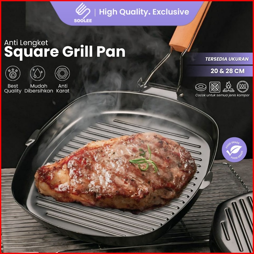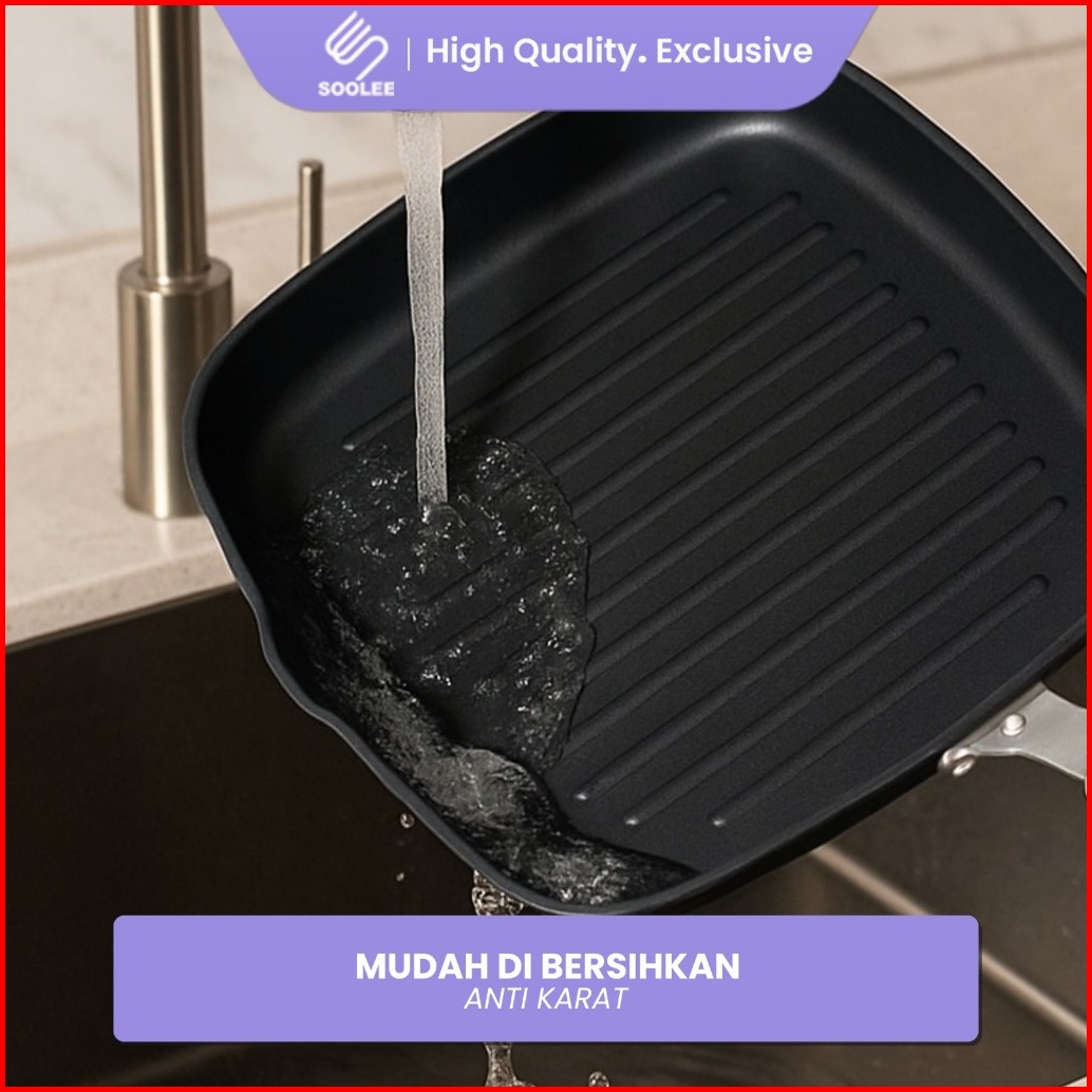 Soolee Panggangan Anti Lengket Teflon Panci Serbaguna Wajan Bbq Panci Pemanggang Square Grill Pan