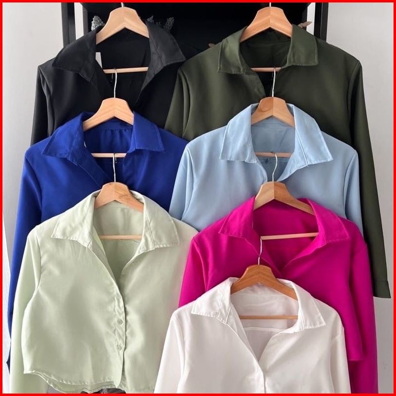 Long Lexa Sakura Crop Kemeja Wanita Casual Kerja
