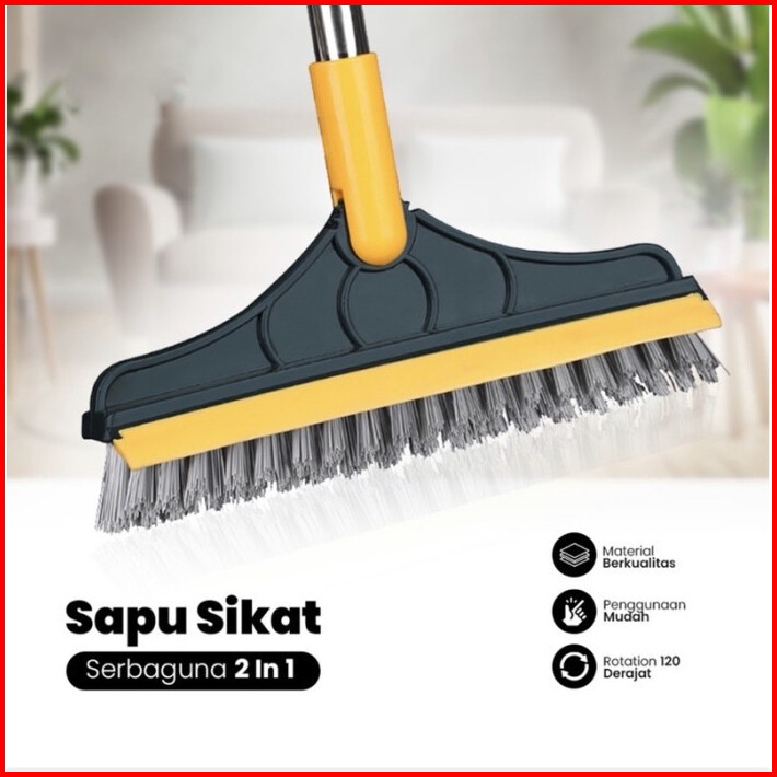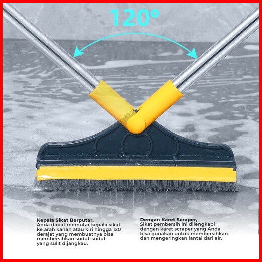 Sapu Sikat Lantai 2in1 Wiper Sikat Lantai Dorong Kamar Mandi Gagang Panjang Sapu Pembersih