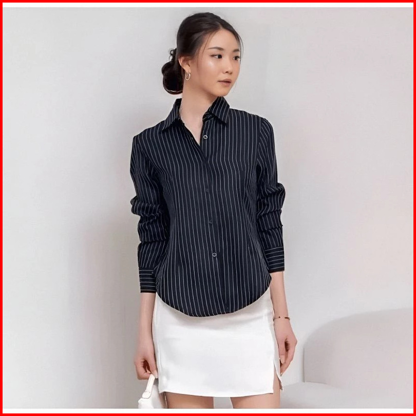 Kemeja Luna - Kemeja Wanita - Atasan Wanita Stripe Salur - Kemeja Basic Lengan Panjang