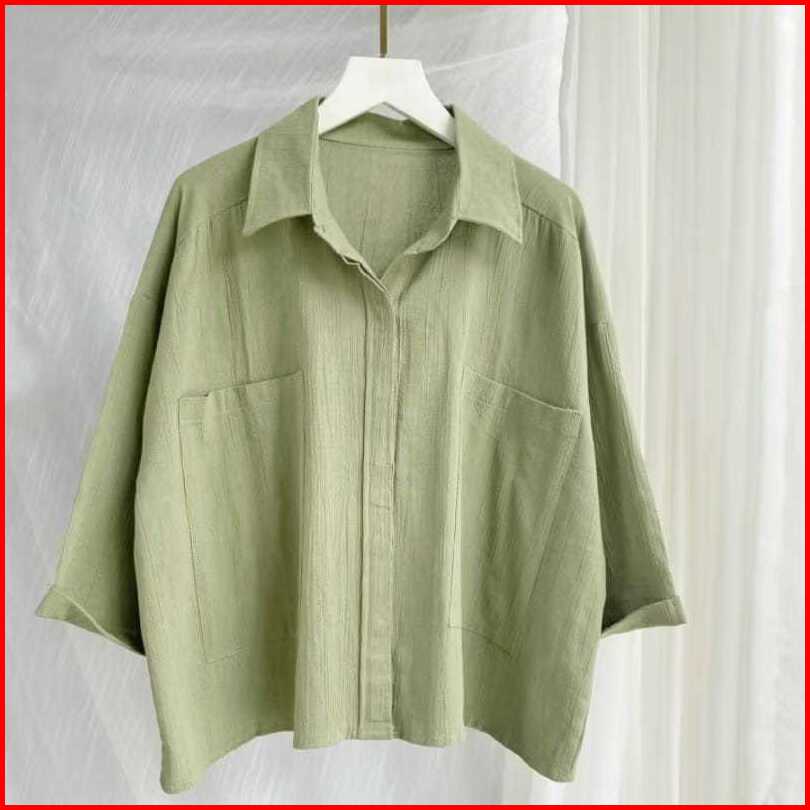 Cozie Zaraa Kemeja Wanita Crop Top Saku 2 Zavil Bahan Lembut Lengan Pendek