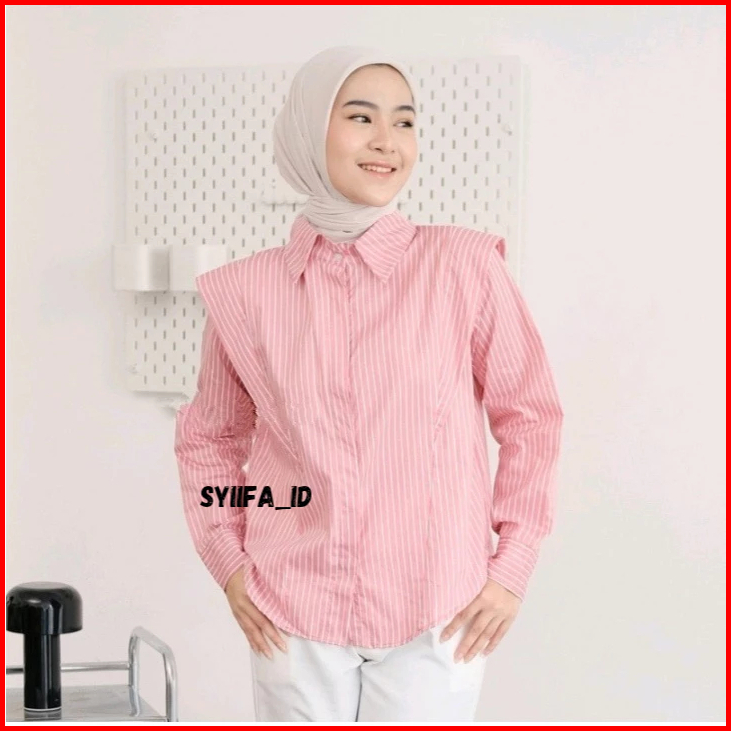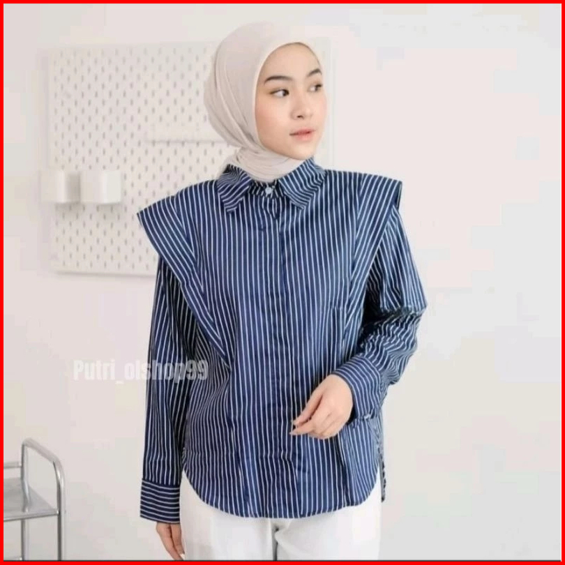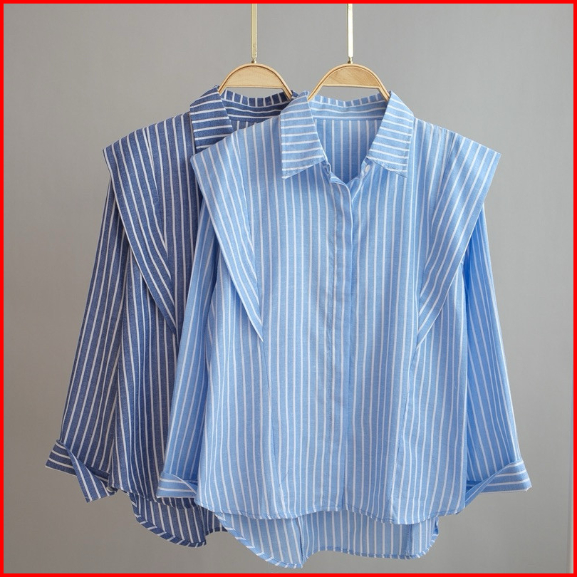 Kemeja Wanita Kemeja Salur Atasan Stripe Korean Style