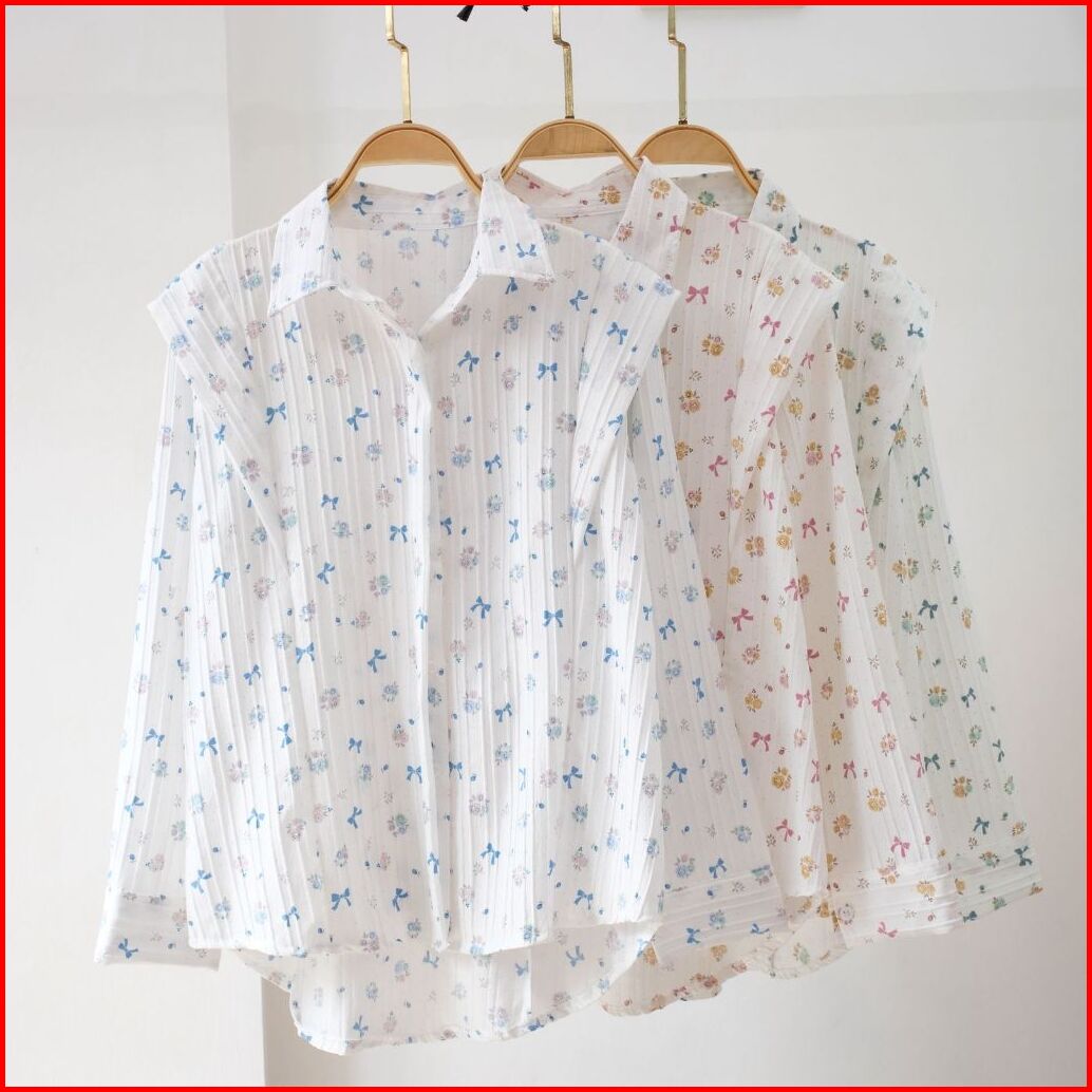Kemeja Wanita Motif Bunga Korean Style Top Atasan Wanita Kekinian Kemeja Wanita Bahan Elora