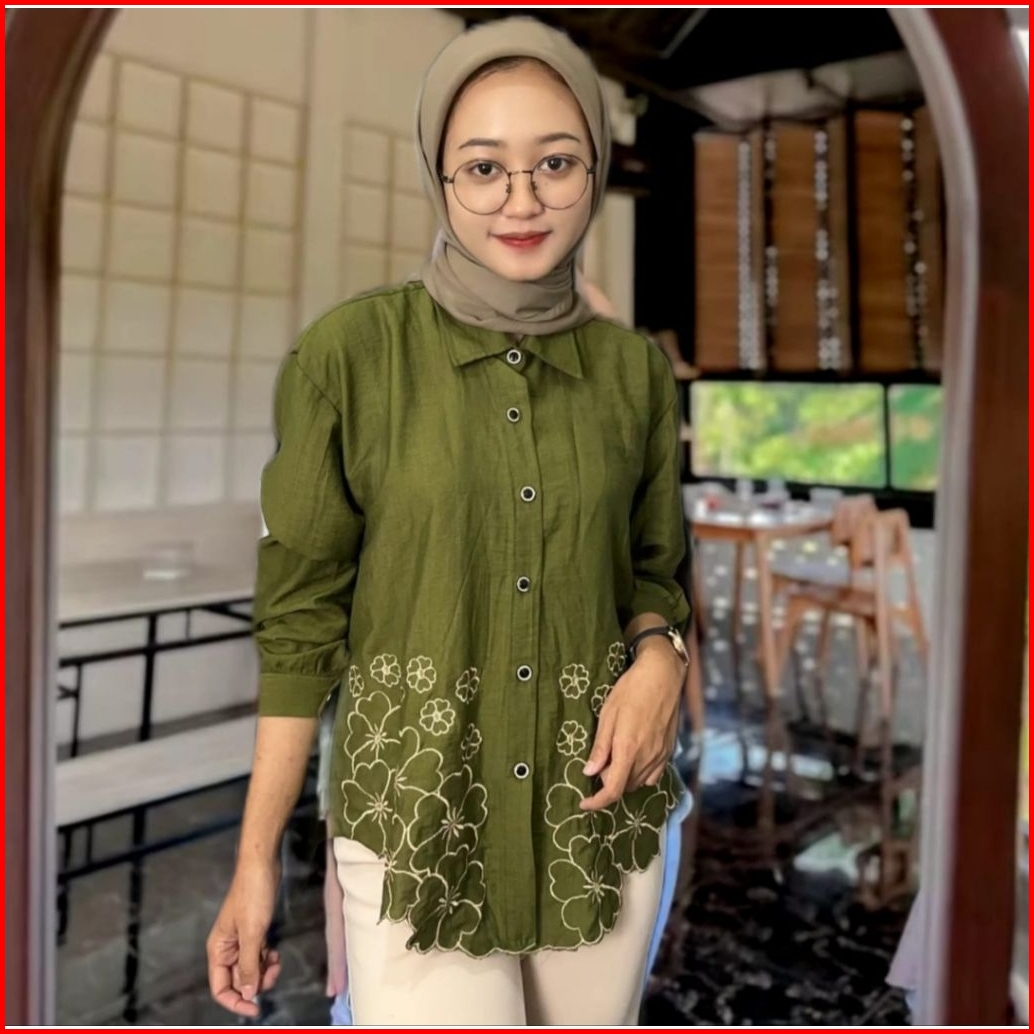 Kemeja Deanda Motif Bordir Kemeja Pololinen Kekinian Kemeja Blouse Korean