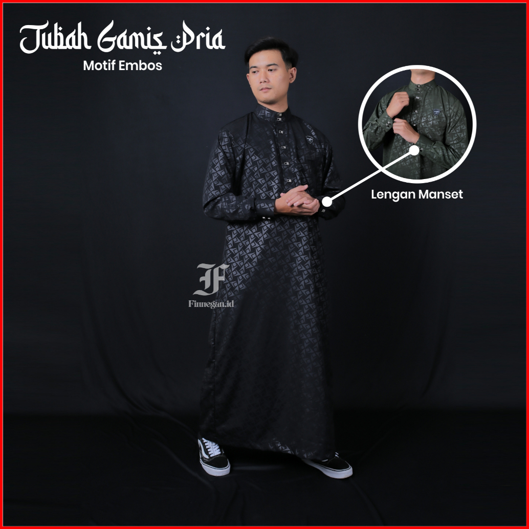 Jubah Pria Dewasa Bahan Embos Model Kancing Sultan Lengan Panjang Manset Kerah Berdiri