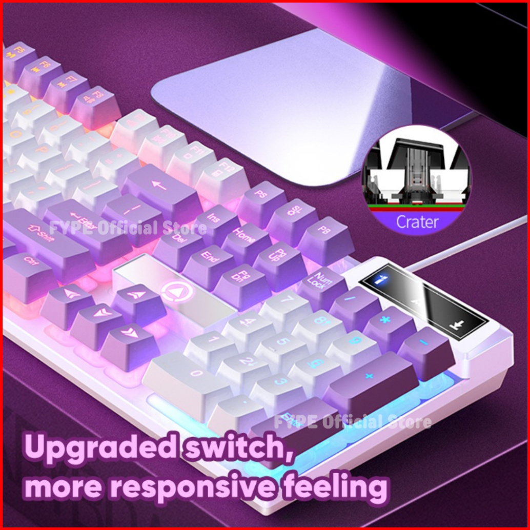 Fype Ungu Gaming Keyboard Mechanical K500 Feel Pink Mekanikal Kayboard Eksternal Gamer Kabel Lucu Mecha Purple Girl Cute