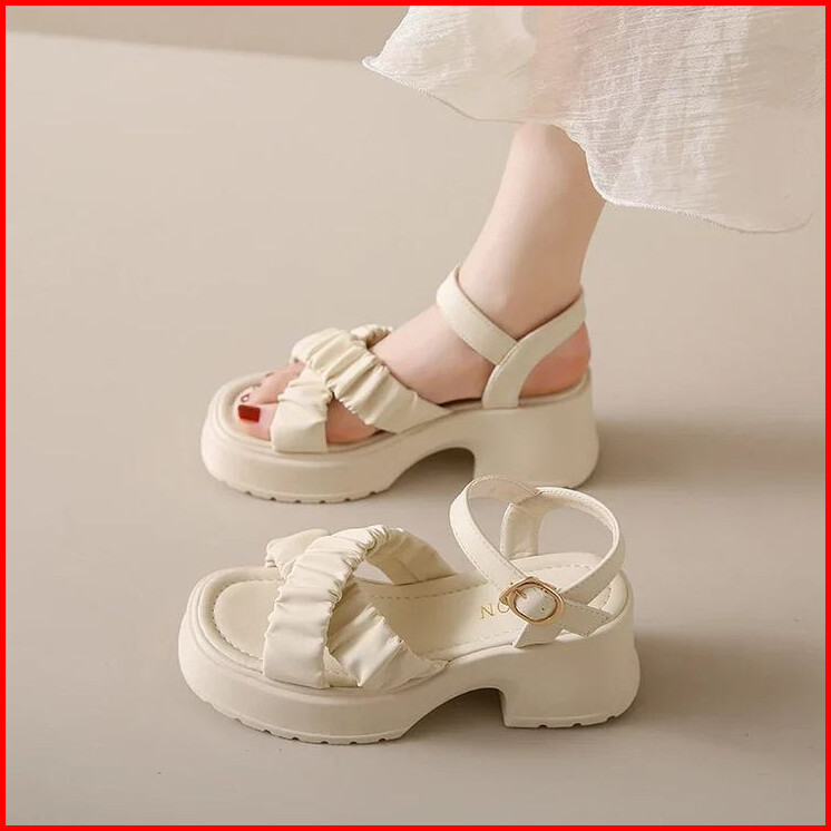Sandal Wanita Wedges Hak Tebal 5cm Stylish Nyaman Gen Z Look