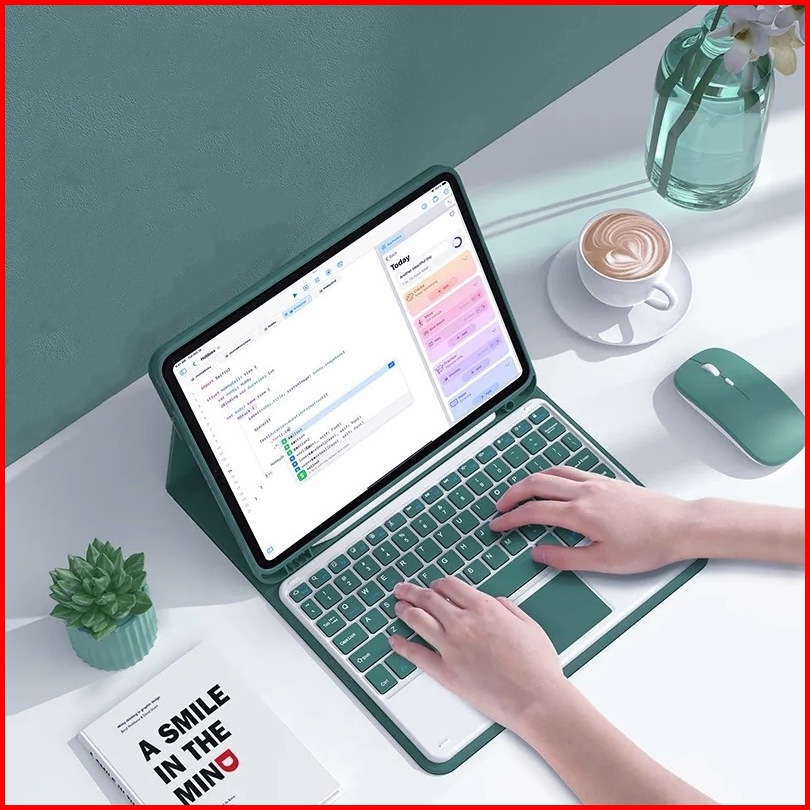 Aioneus Wireless Bluetooth Keyboard Mouse Set 10inch Touchpad Macaron Colourful Touch Keyboard