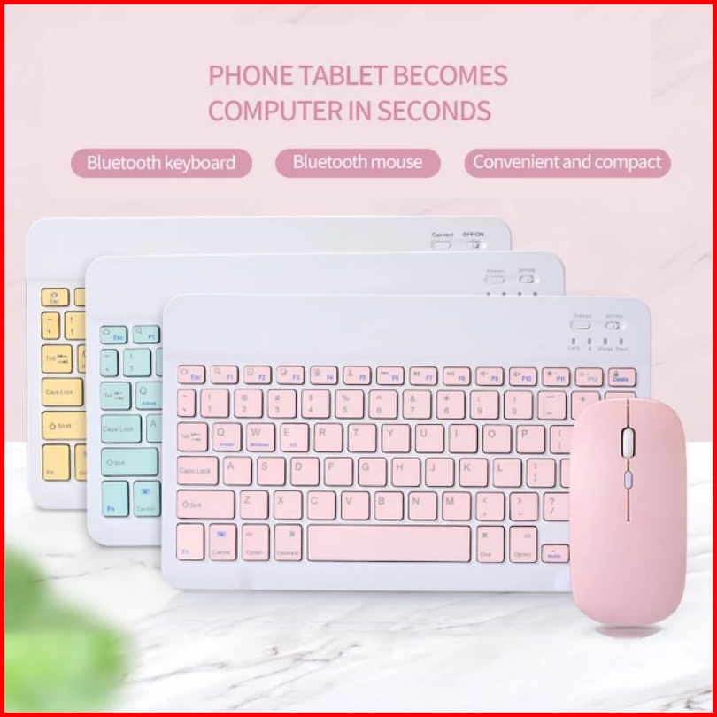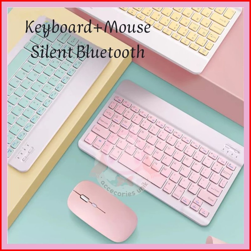 Wireless Bluetooth Keyboard Mouse Silent Click Set Macaron Lightweight Portable For Windows Ios Android