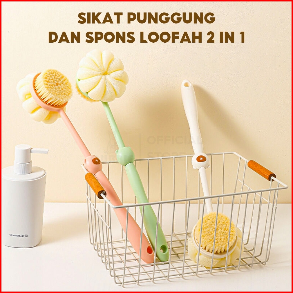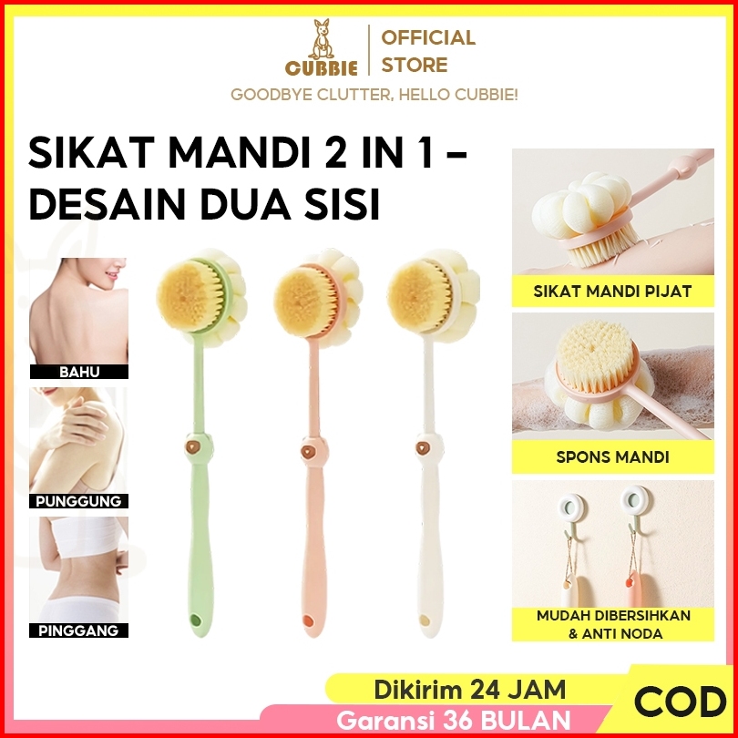 Cubbie Shower Puff 2 In 1 Karakter Sikat Mandi Bulu Spons Halus Lembut Gagang Panjang Alat Gosok Punggung Sikat Mandi Si
