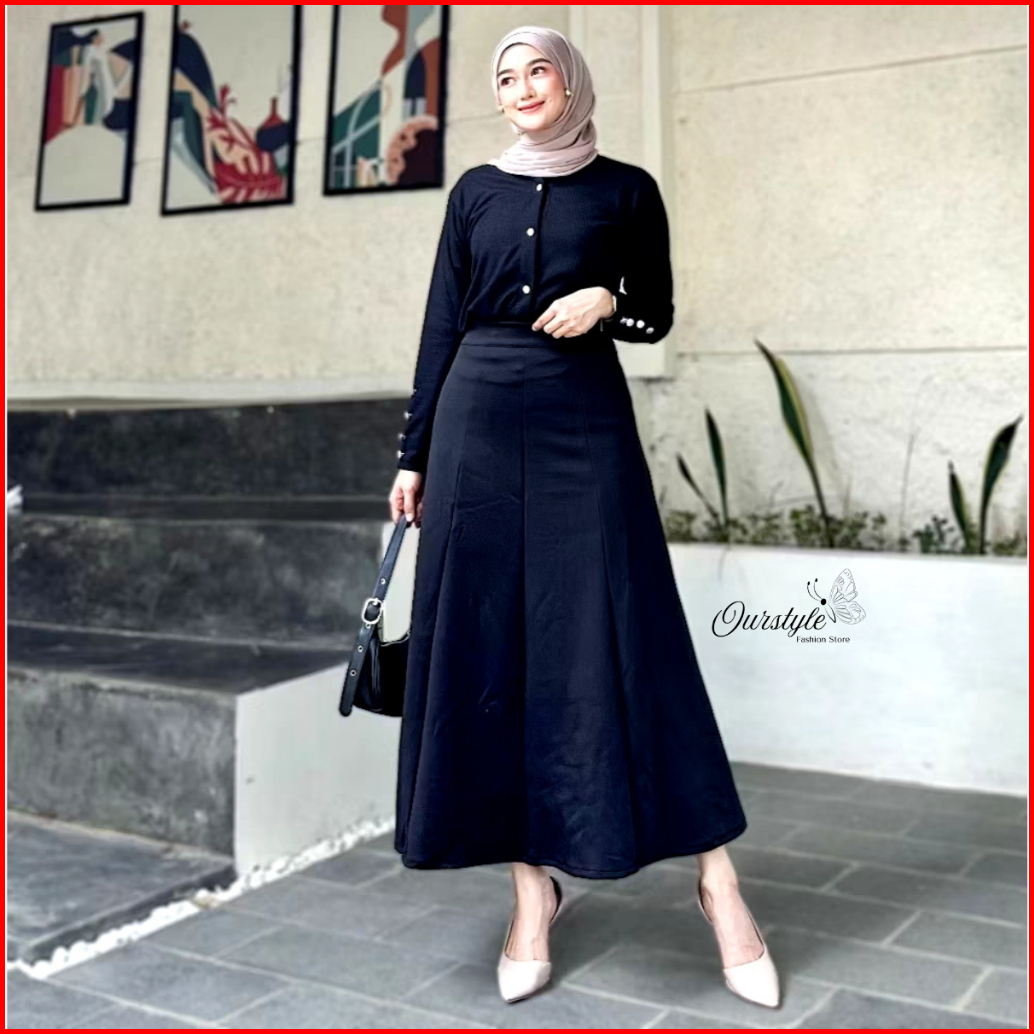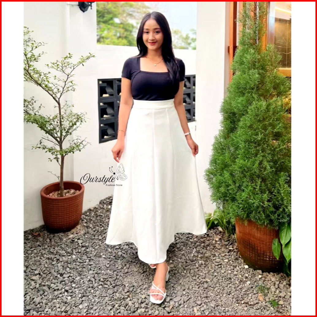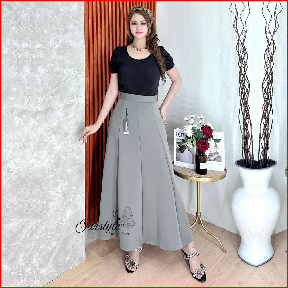 Ourstyle - Rok Mayung Wanita Korean Loose Maxi Skirt - Rok Flare Basic Polos Audy Skirt Panjang