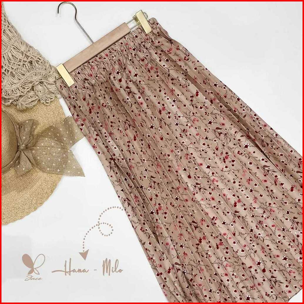 Mybina- Rok Plisket Premium Motif Bunga Matahari Rok Plisket Panjang Rok Plisket